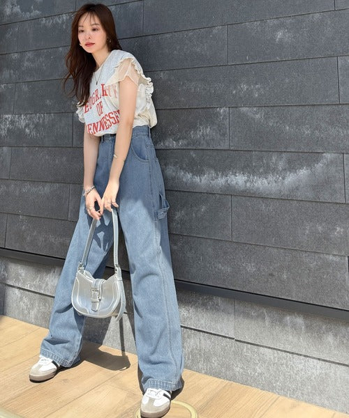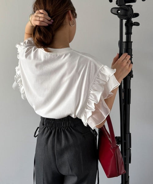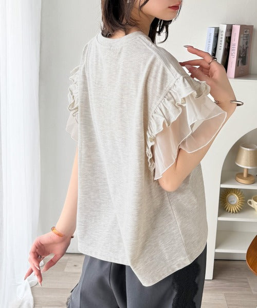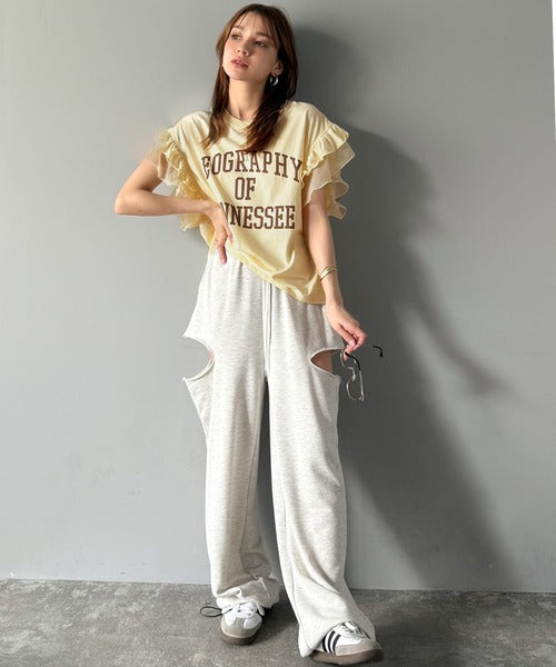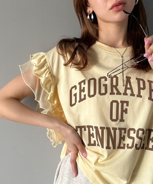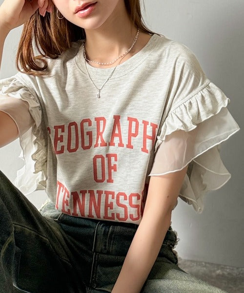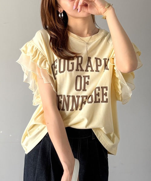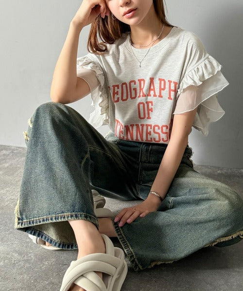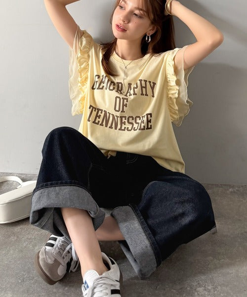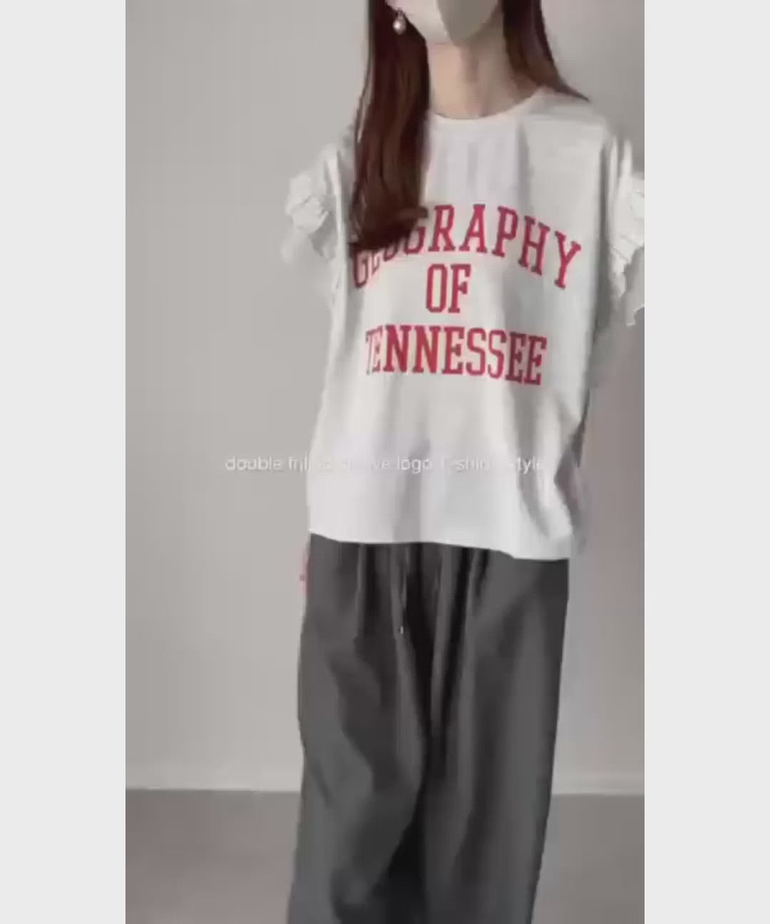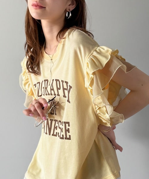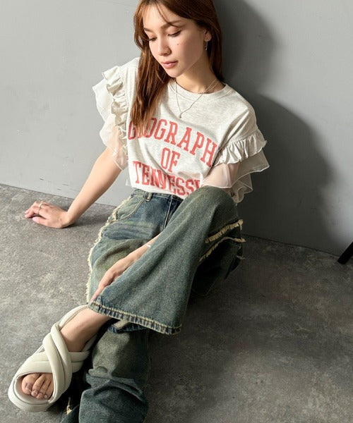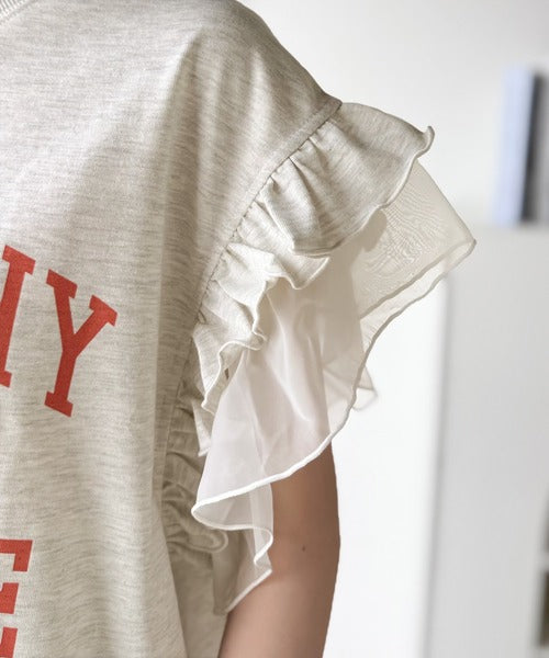 【mily bilet】可愛さふわり2倍増し! ダブルフリル袖カレッジライクロゴゆるTシャツ mi1329036