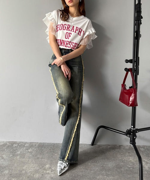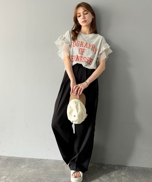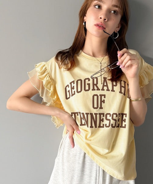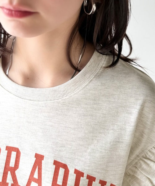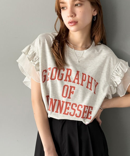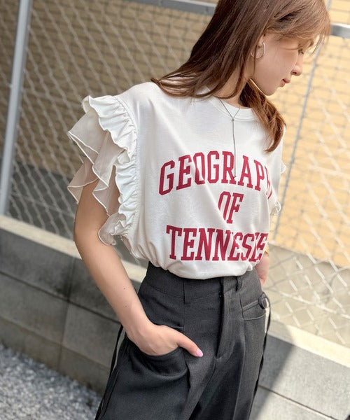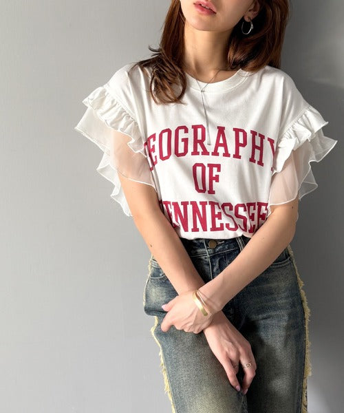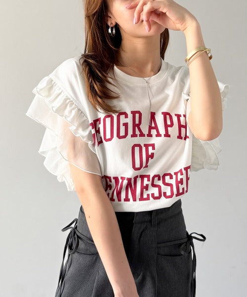 フリル袖で二の腕カバー も叶う、こなれカレッジライクロゴTシャツ