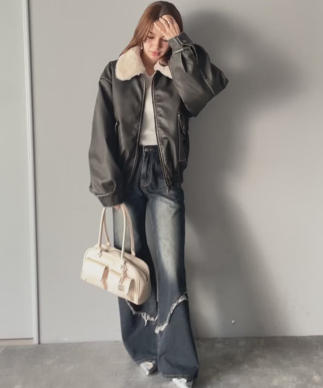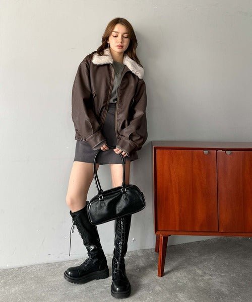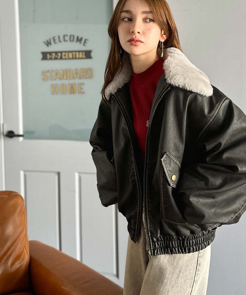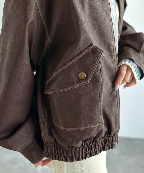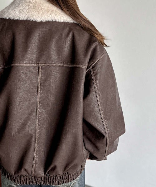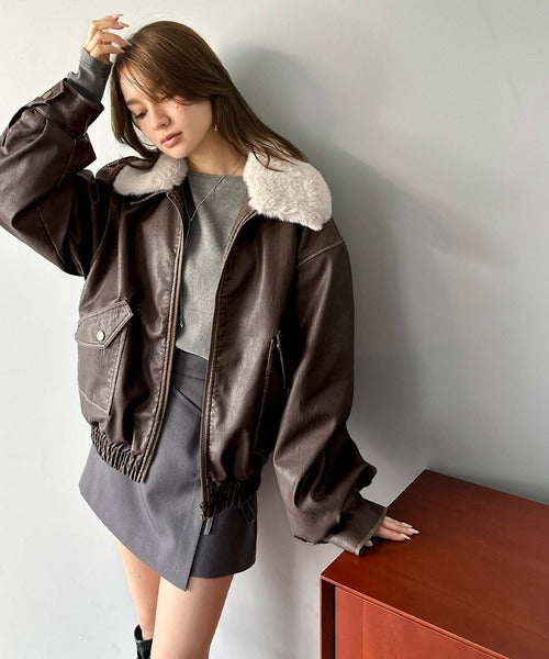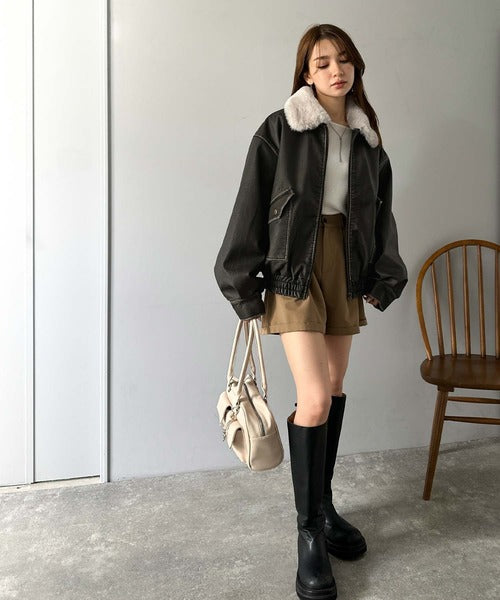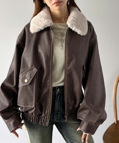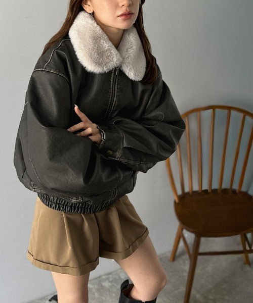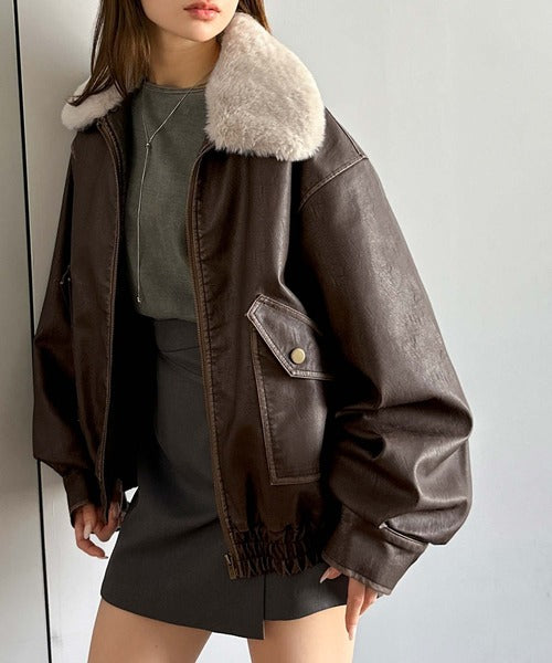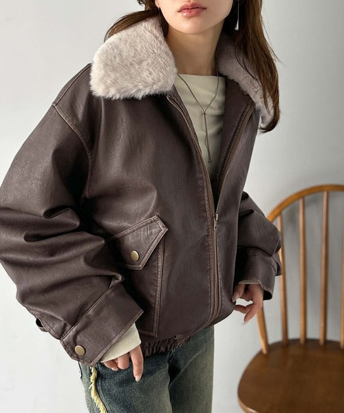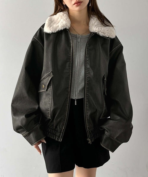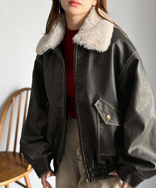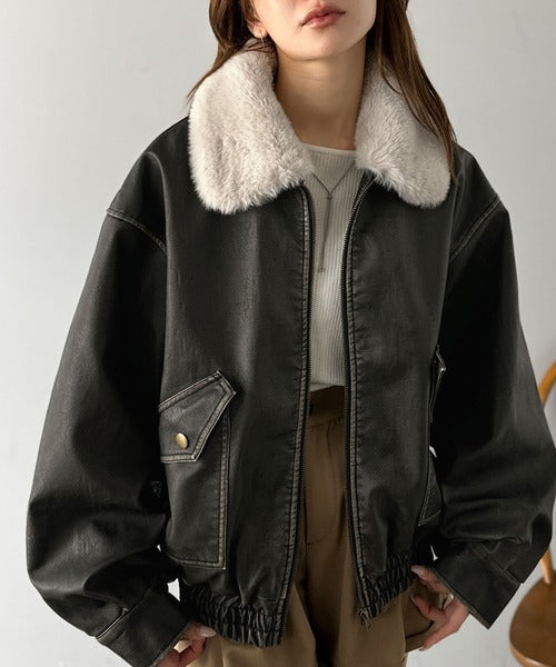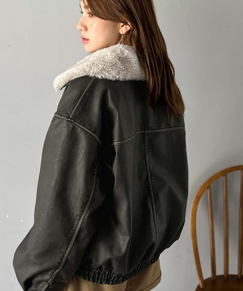 【mily bilet】ファー襟取り外し可能◎ヴィンテージライクダメージフェイクレザーブルゾン mi1329049