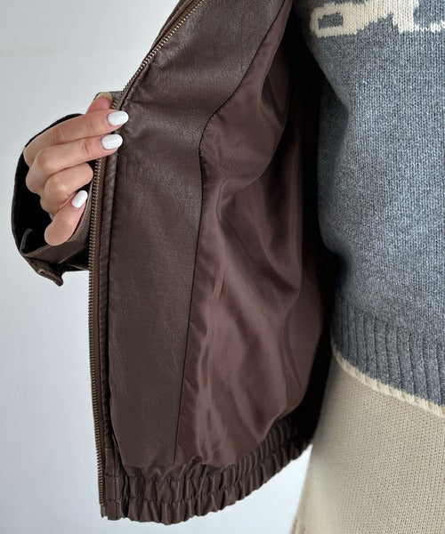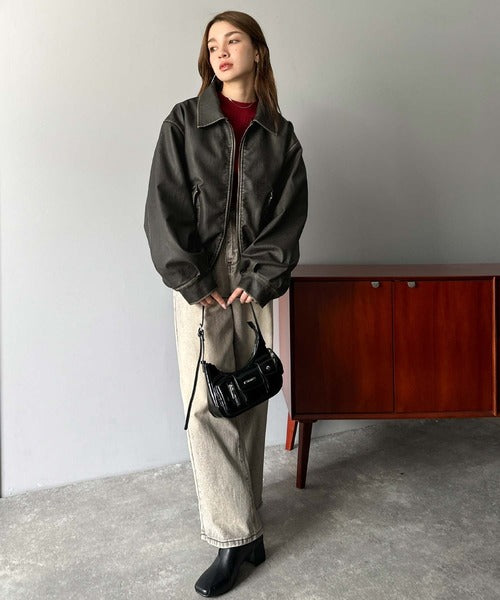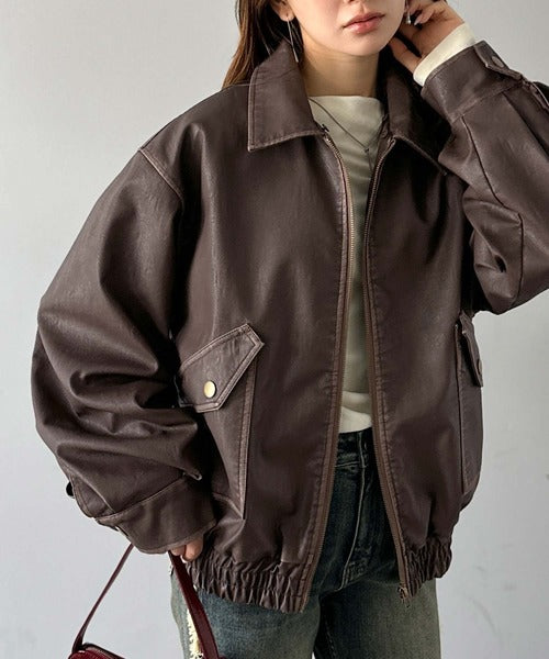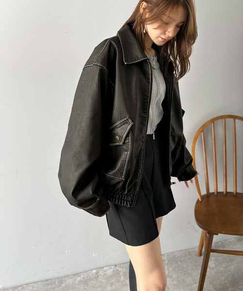 ヴィンテージライクな加工を施したフェイクレザーを使用したトレンド感のある1枚。
