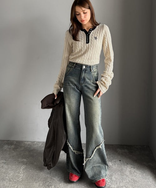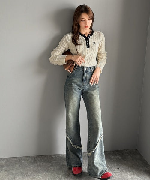 ケーブル編み×配色ネックでお洒落に格上げ♡