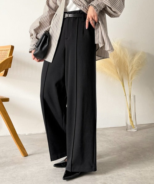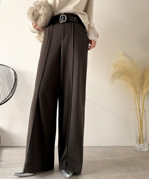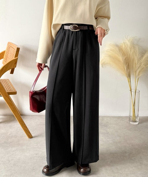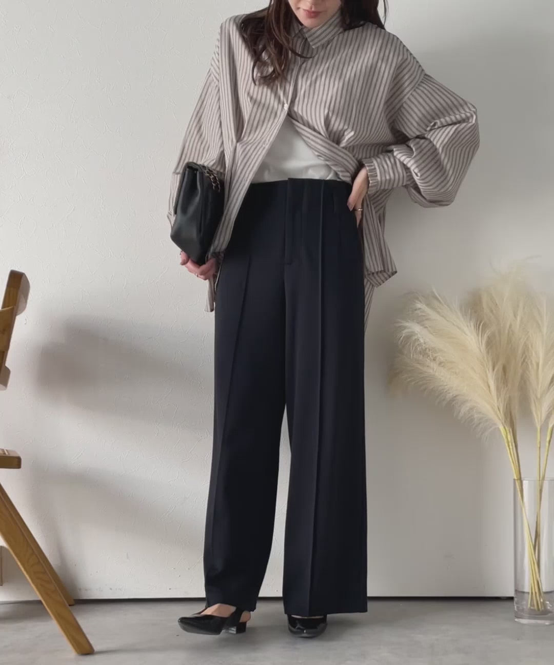 ハイウエスト×センターピンタックで、今っぽい抜け感と上品さを両立。