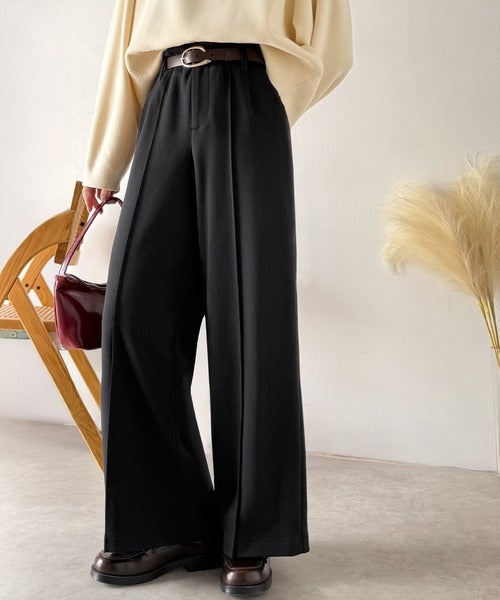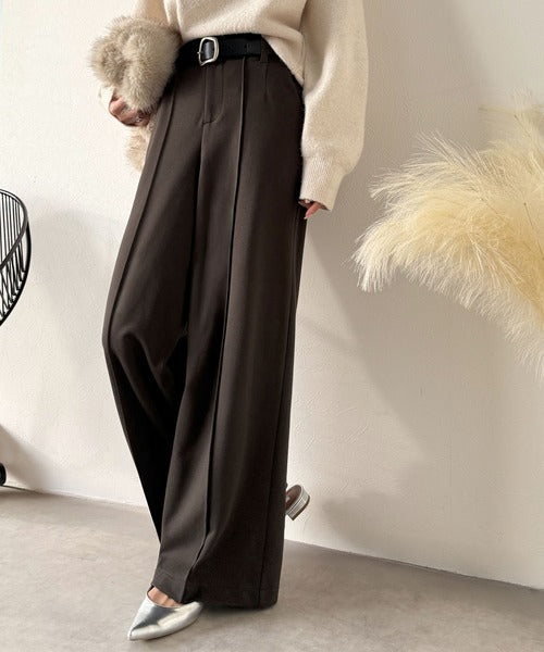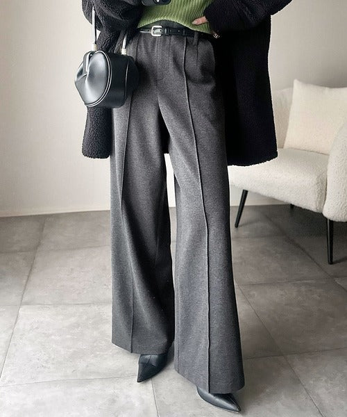 美脚もこなれ感も両立!大人の洒落ワイドが主役になる、ブラッシュドジャージハイウエストワイドパンツ ce0940251