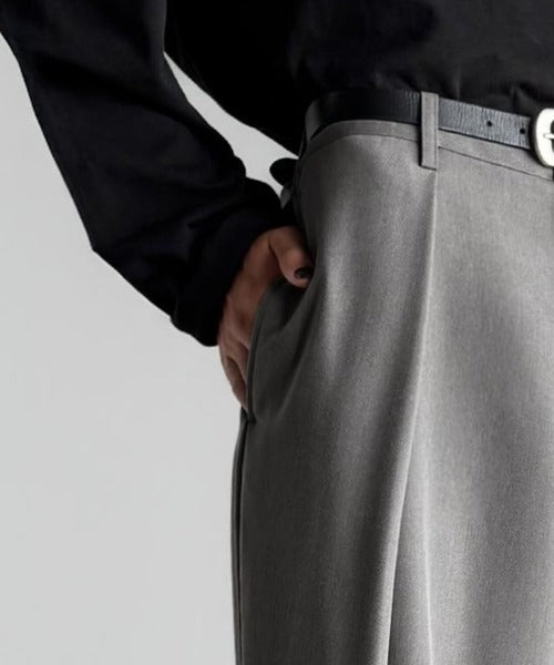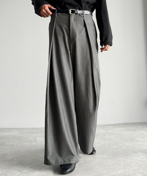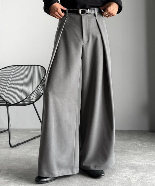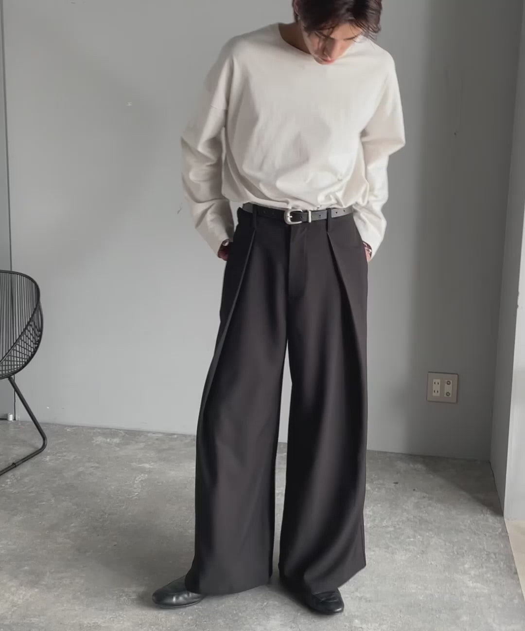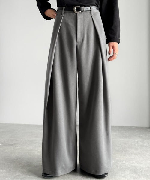 ウエスト部分に深めのタックを施し、立体感のある袴型のラインを実現したワイドパンツ。