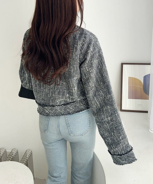 きらめく魔法に甘さを添えて♪リボンブローチ使い長袖ラメ入りツイードジャケット(フォーマル) mi1019111