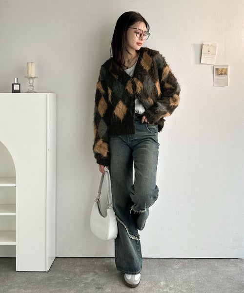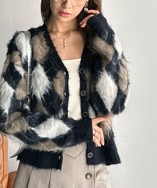 【mily bilet】柄で魅せる。季節感漂う、主役級のアーガイル柄Vニットカーディガン mi1029173