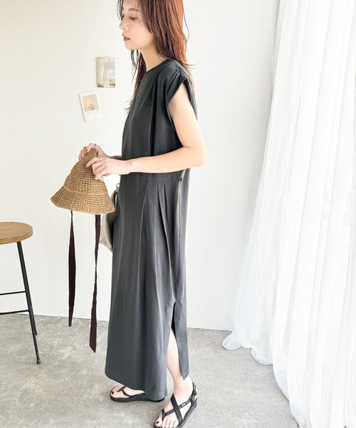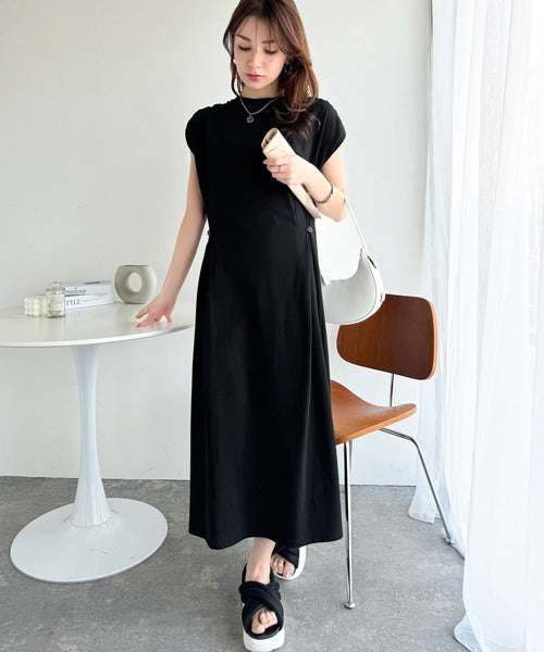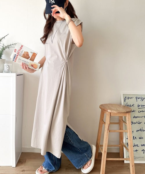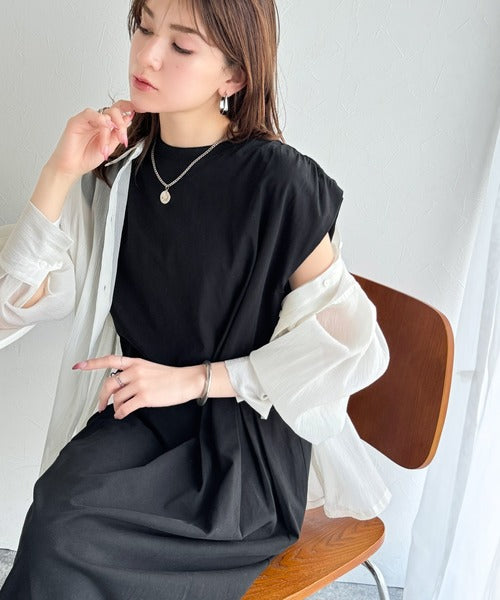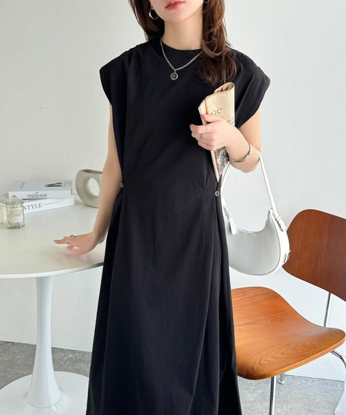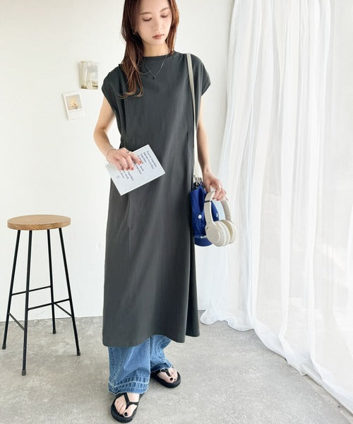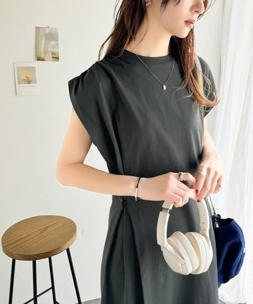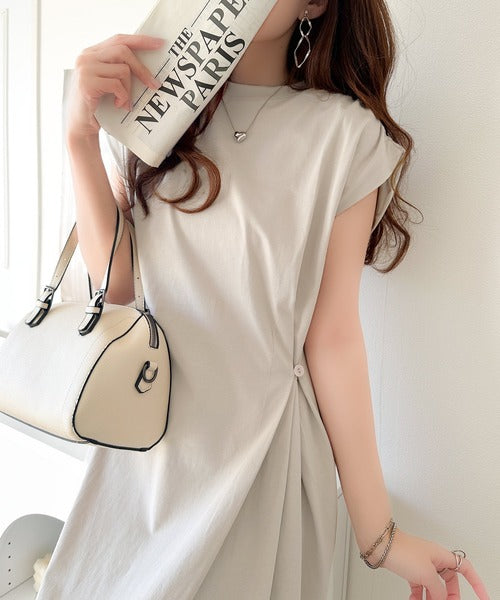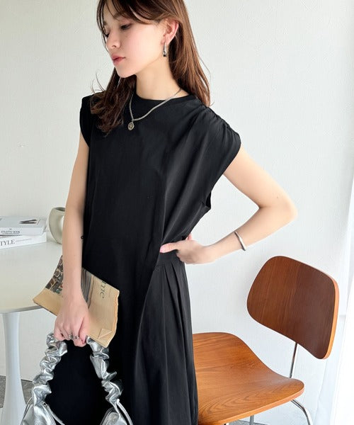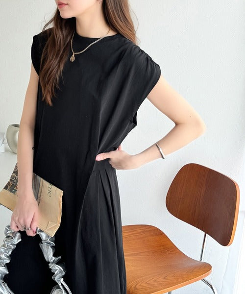 シルケット加工を施した綿100%素材のシルケットアシメタック2WAYワンピース。