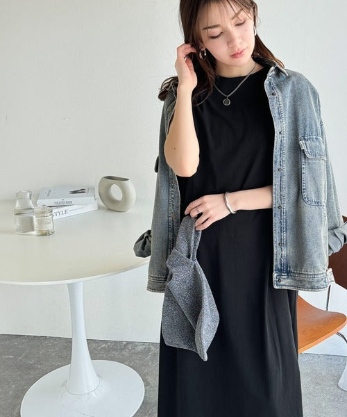 綿100%シンプルモダンデザイン。シルケットアシメタック2WAYワンピース ce1260323