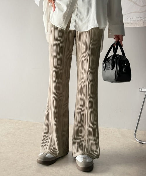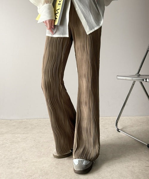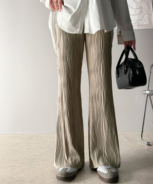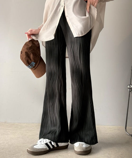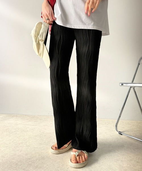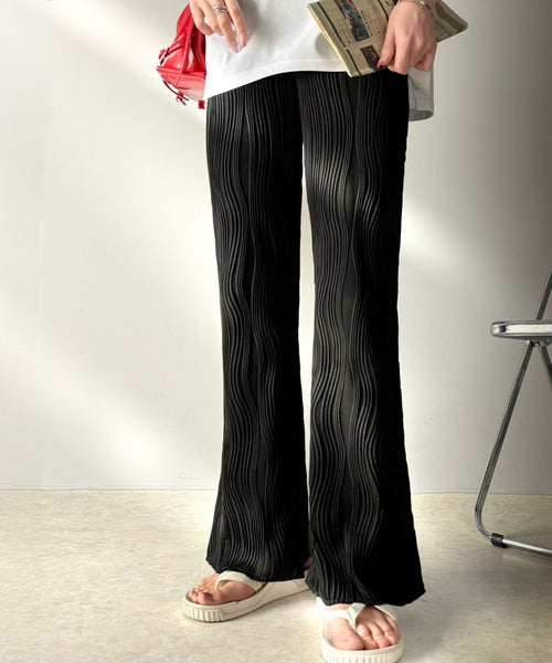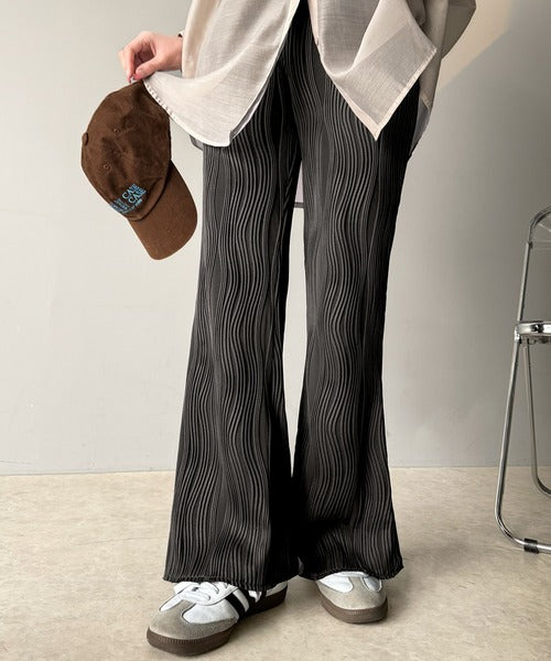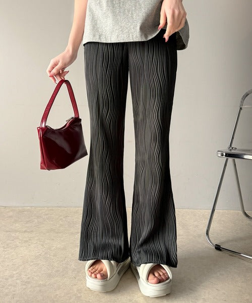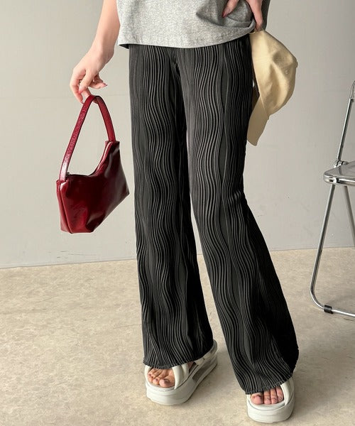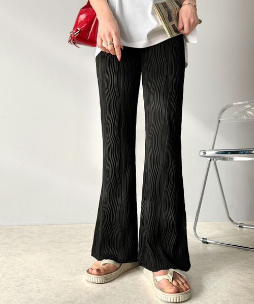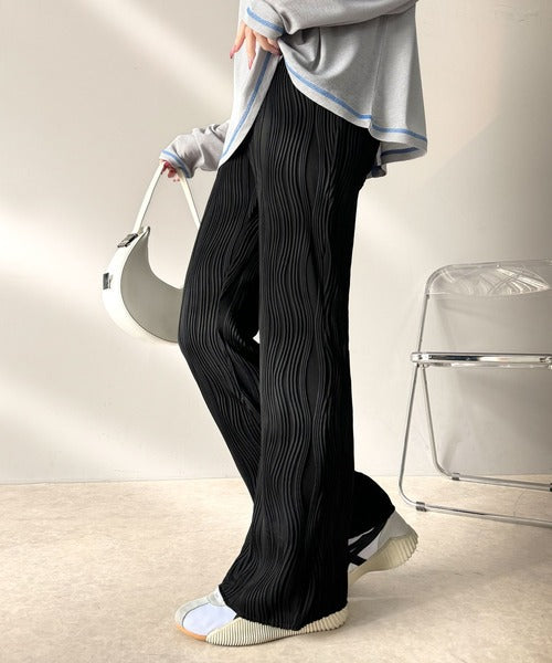 立体的なウェーブ柄が高見えかつ目を引くロングパンツ♪
