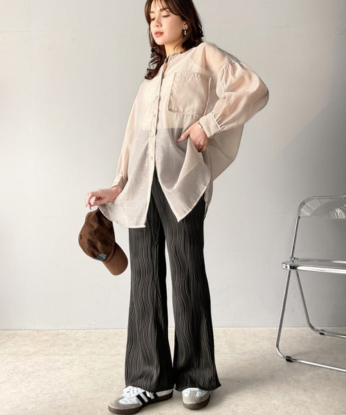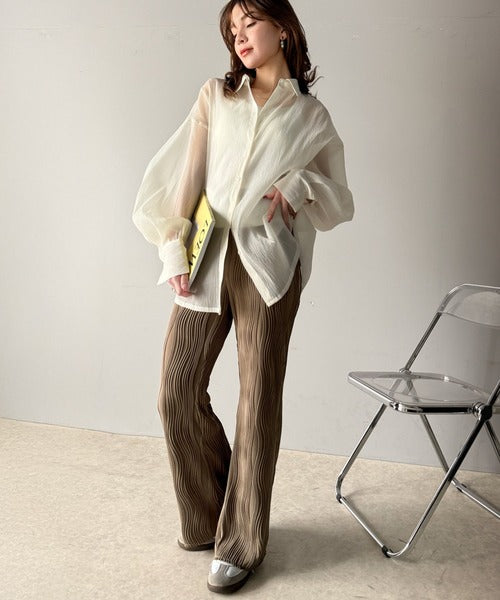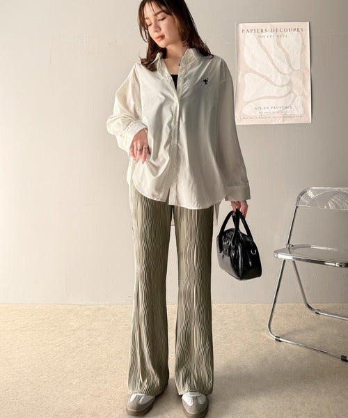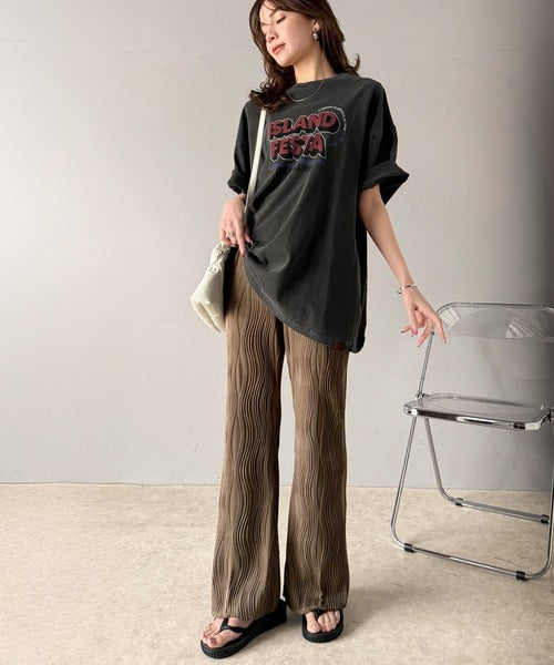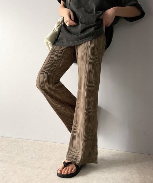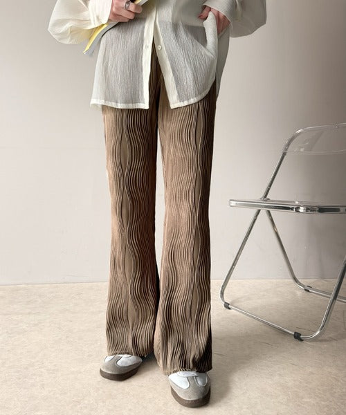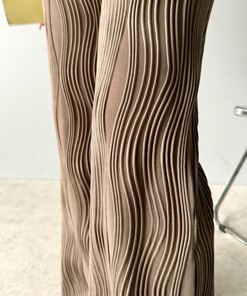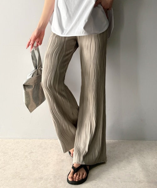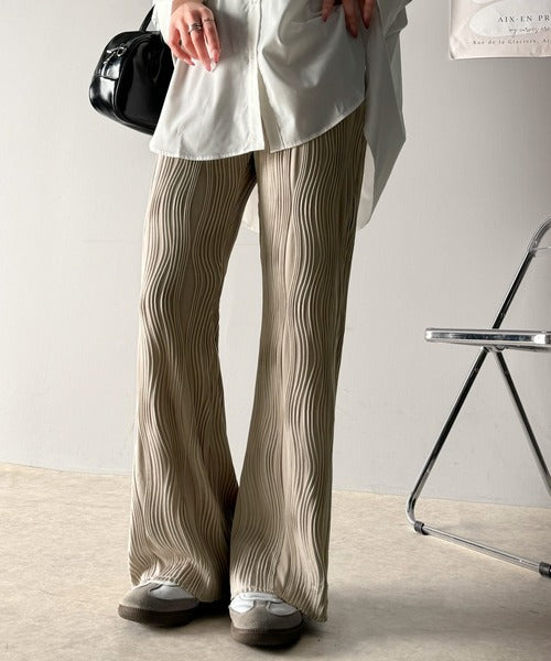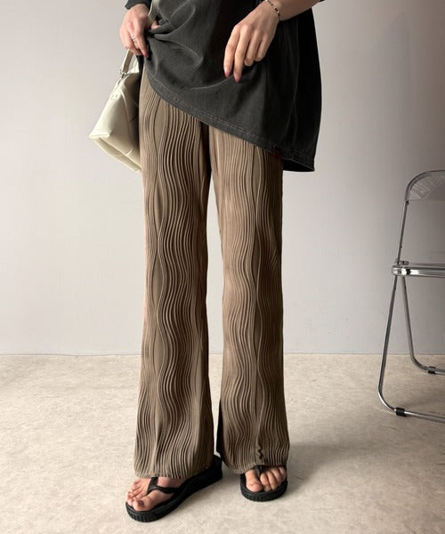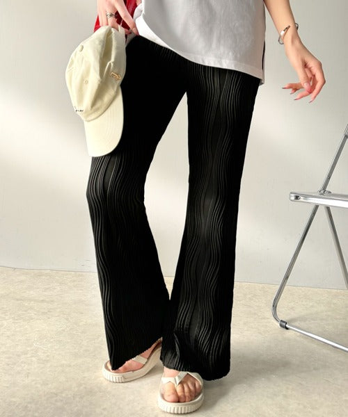 立体的なウェーブ柄が高見えかつ目を引くロングパンツ♪