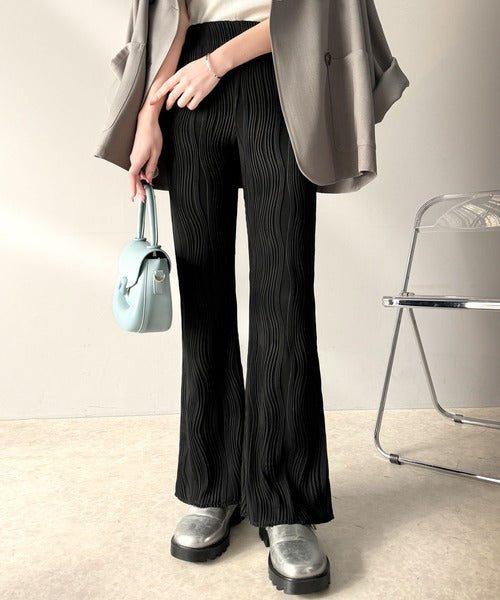 上品さが魅力の「ウェーブジャガードフレアパンツ」!