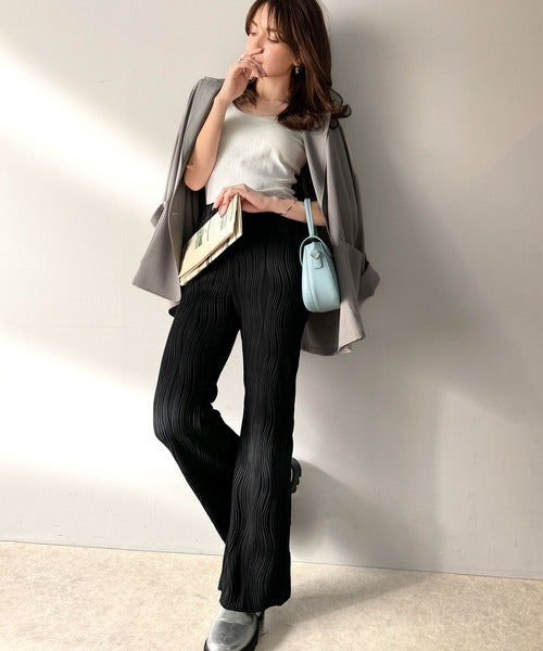 美脚見えと大人の高級感を叶える。ウェーブジャガードフレアパンツ ce1010414
