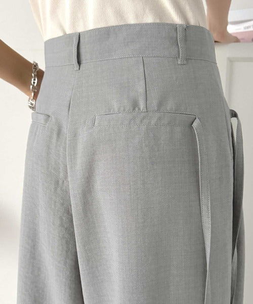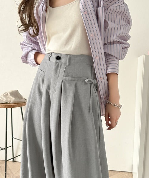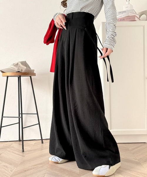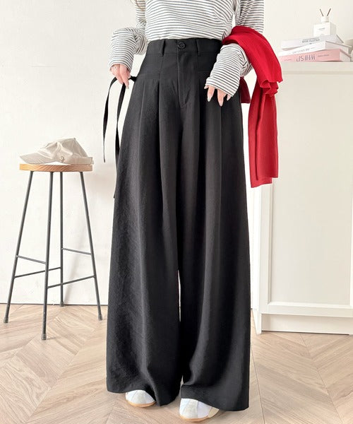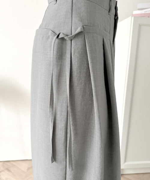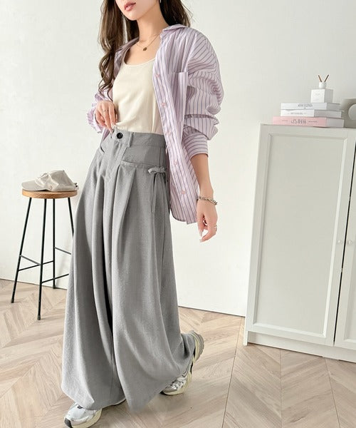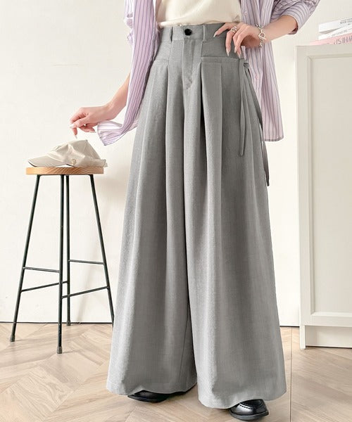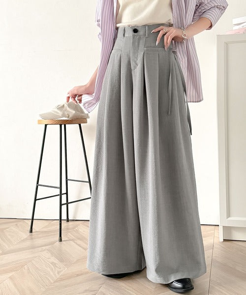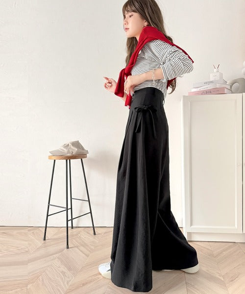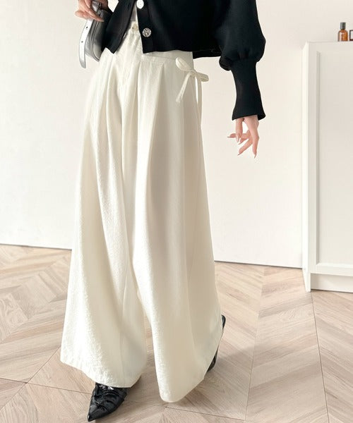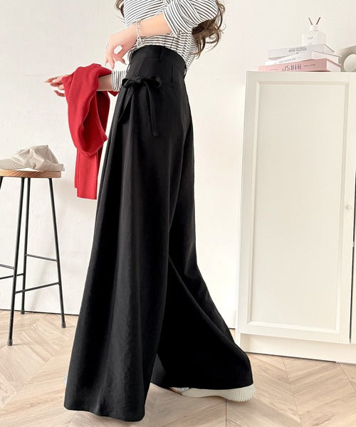 動くたび軽やか美シルエット。サイドリボン付き3タックハイウエストワイドパンツ ce1015073