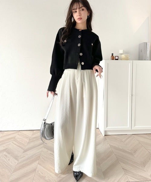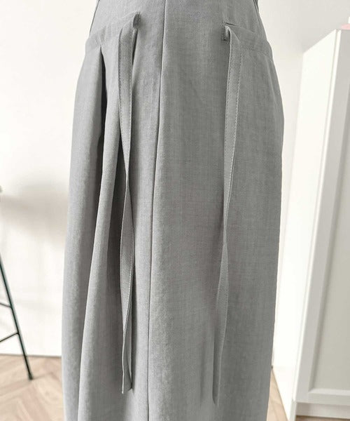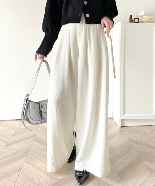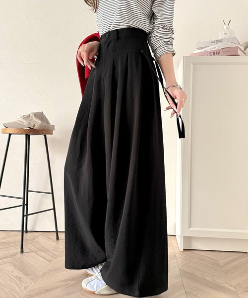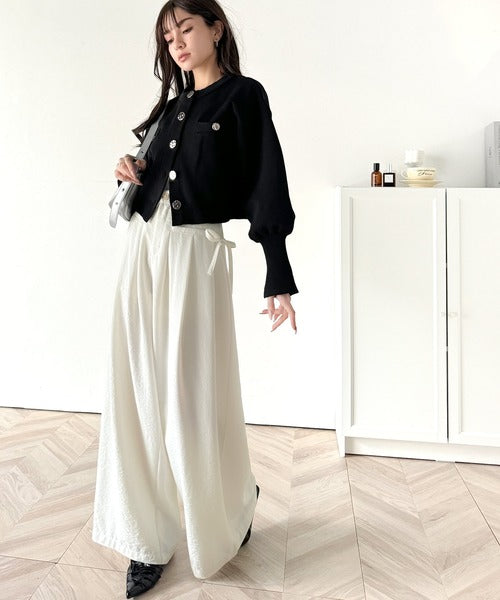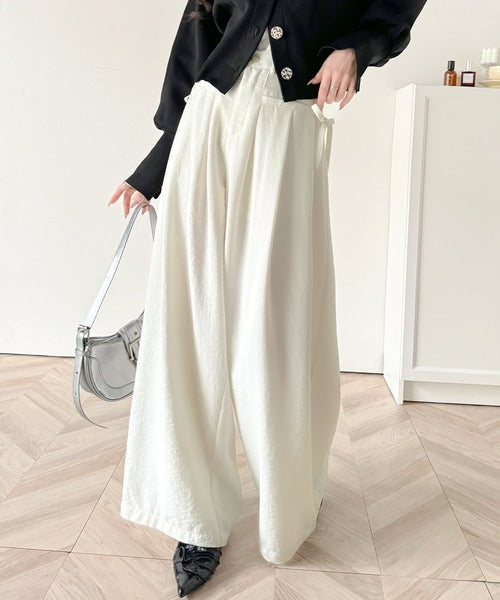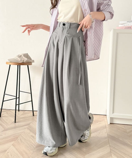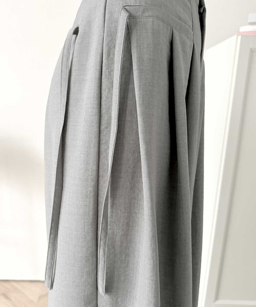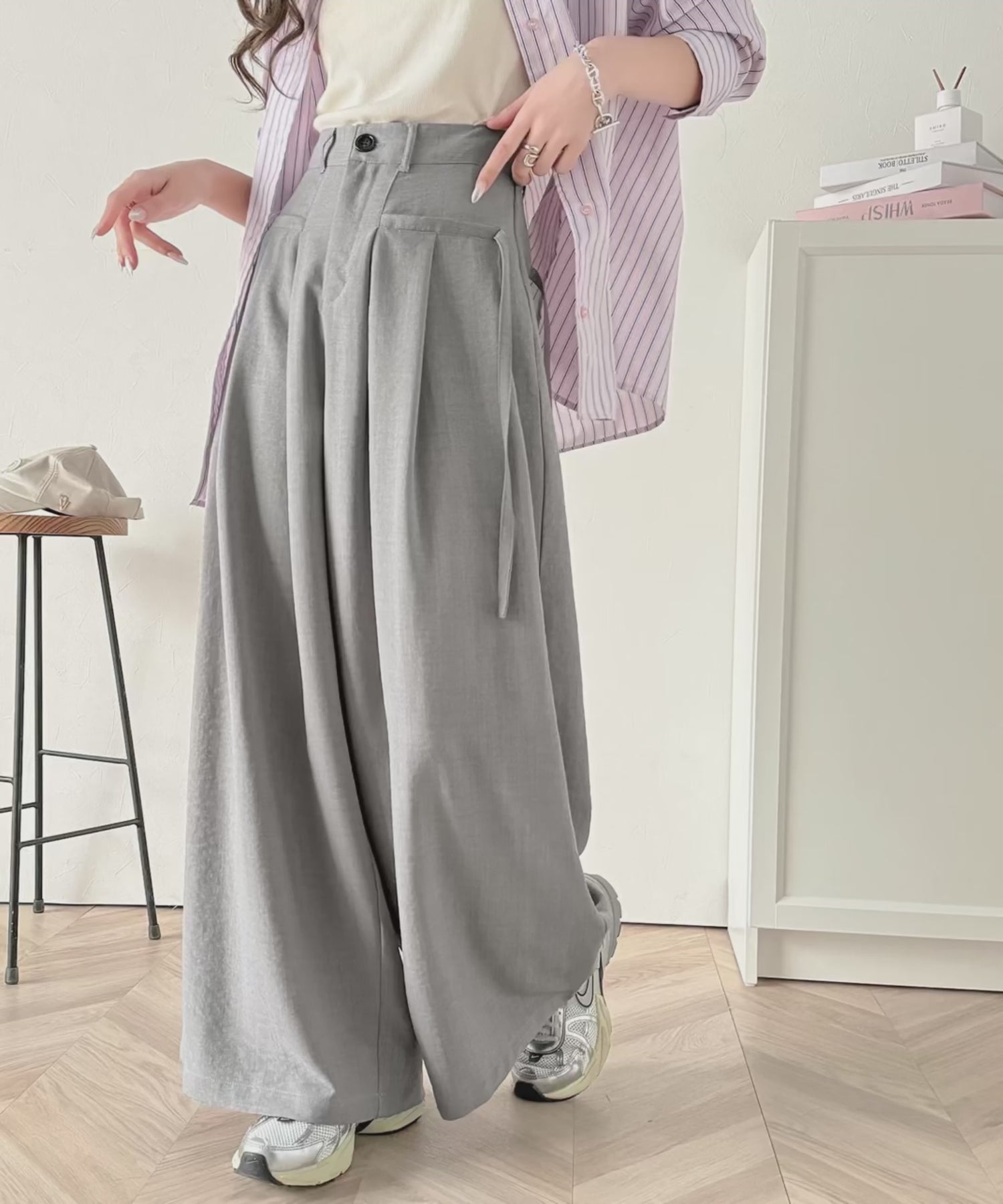 動くたび軽やか美シルエット。サイドリボン付き3タックハイウエストワイドパンツ ce1015073