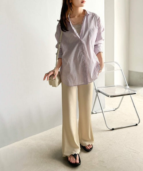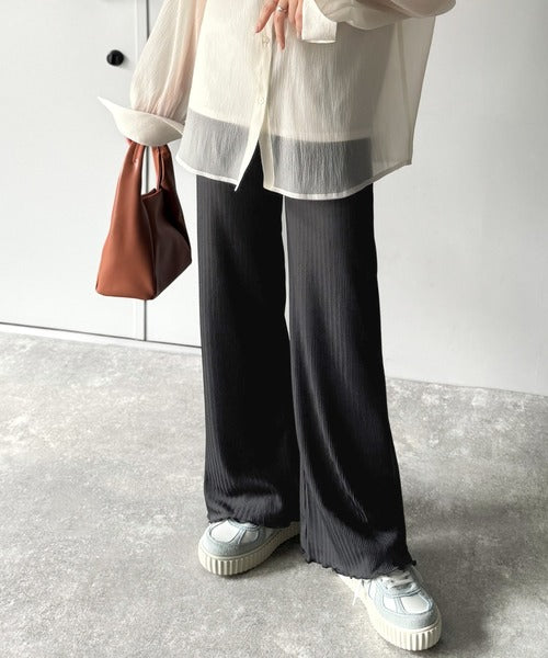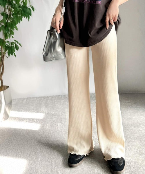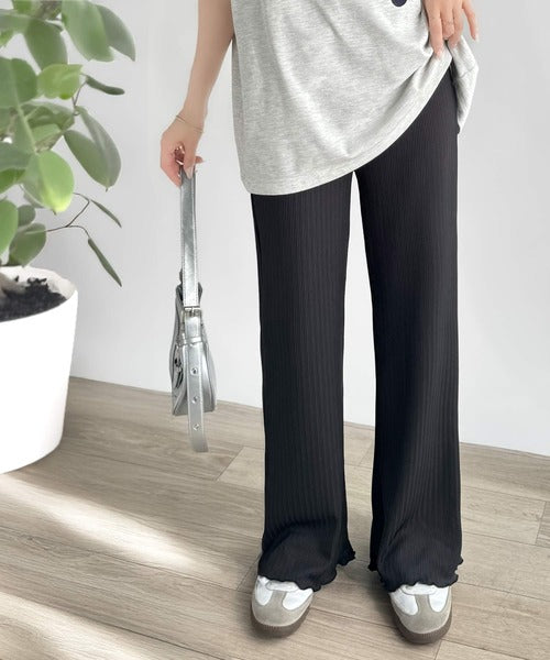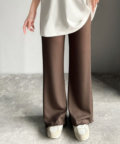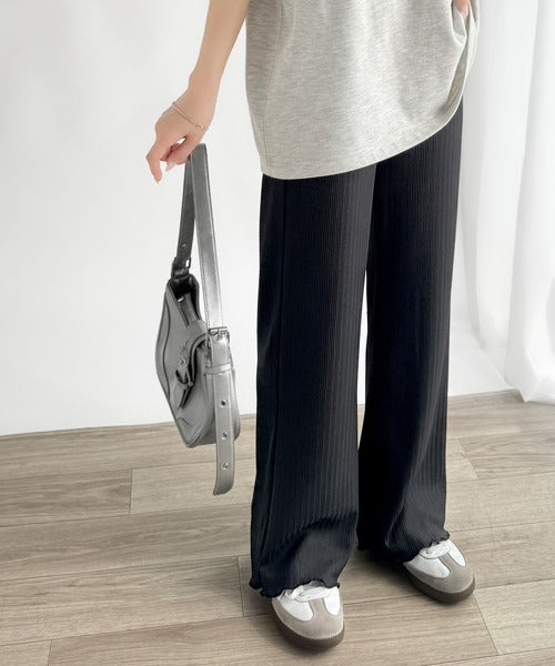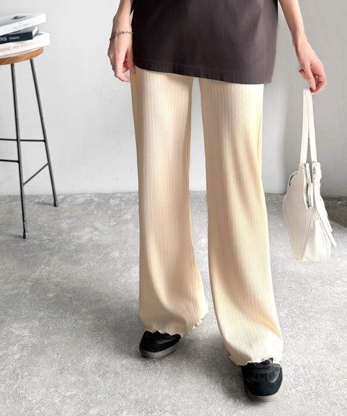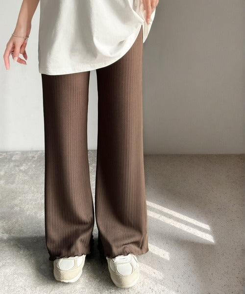 ゆるっとラクして、美脚見え♪ランダムリブ 裾メロウ ストレート イージーパンツ ce1020317