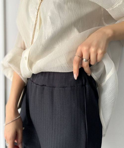 縦ラインを強調するランダムリブで、すらっと見える優秀ボトムス。