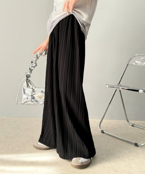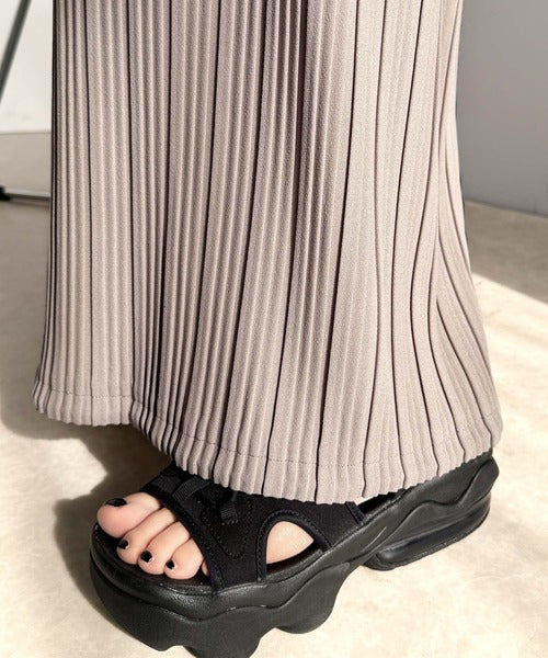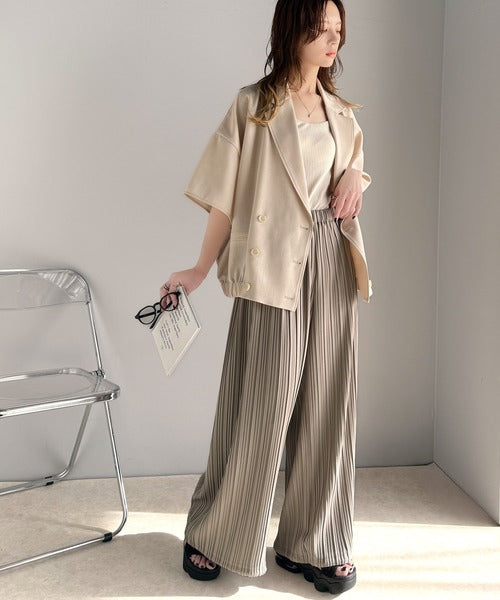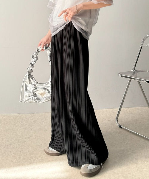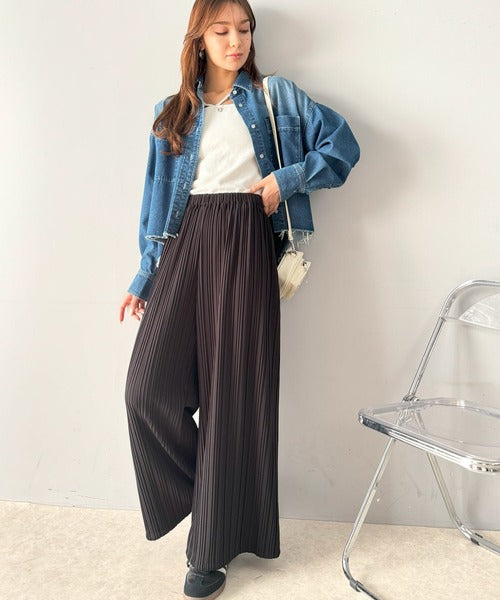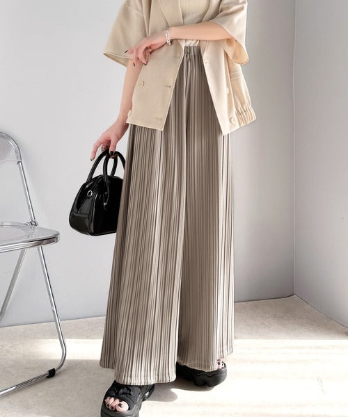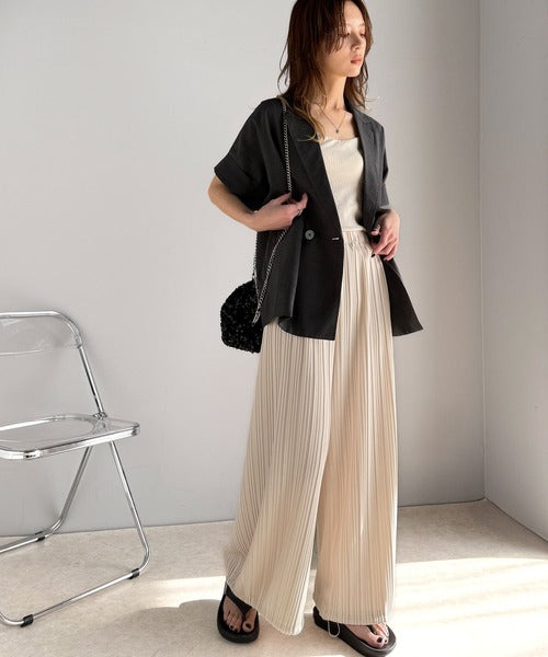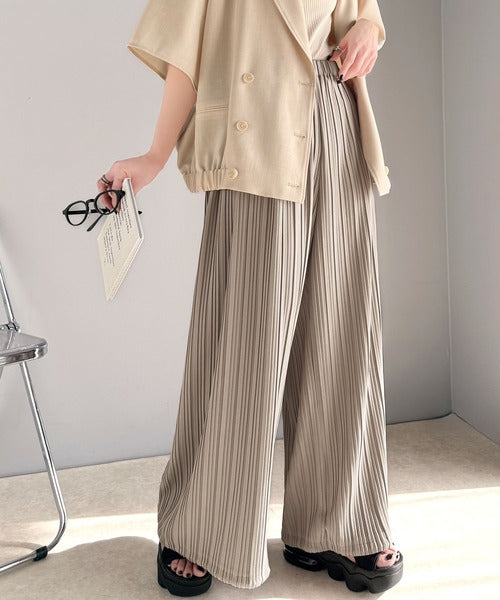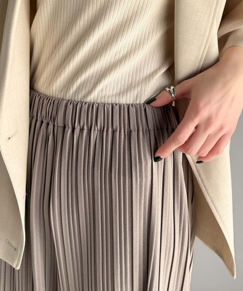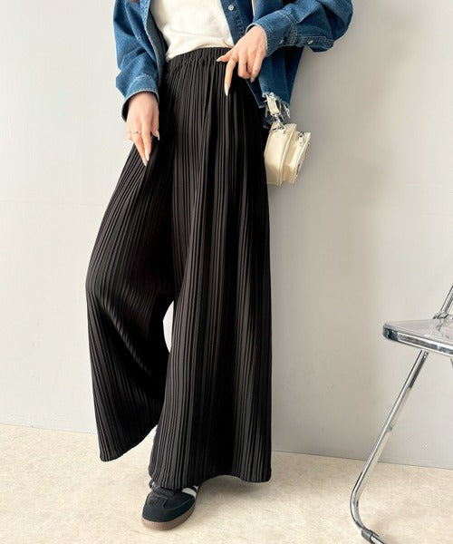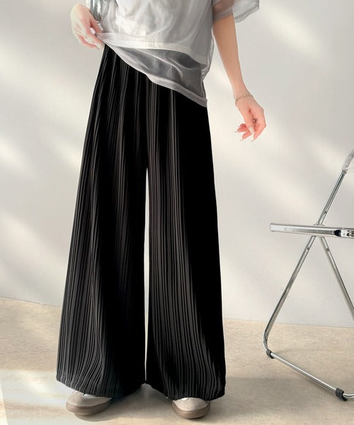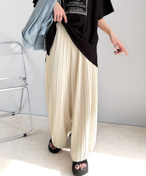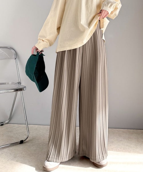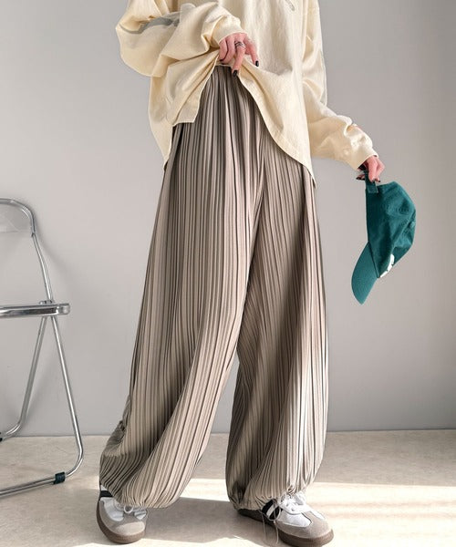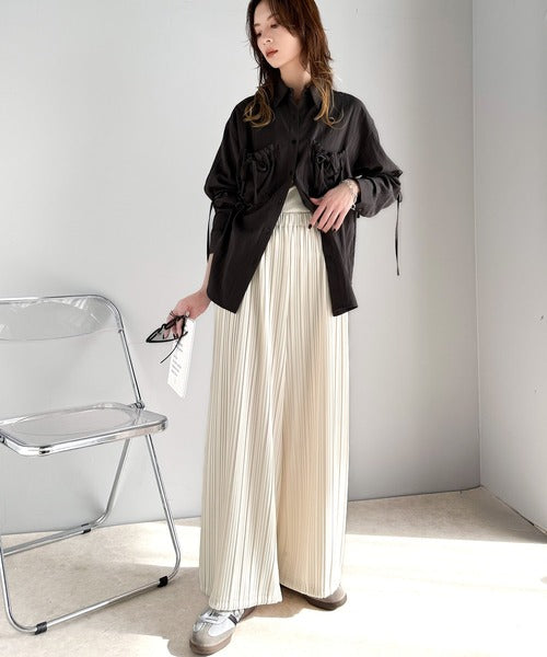 スタイルアップが叶う。2way裾ドロストプリーツ素材ワイドパンツ ce1070156