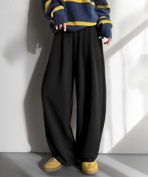 ウエストタック入りのデザインが、程よいリラックス感と脚長効果をプラスしてくれるコクーンパンツです。