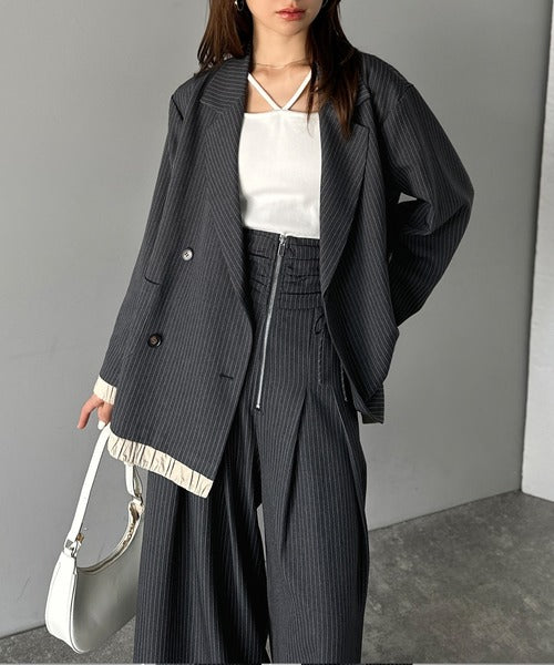 ジャケットを合わせて、クールなキレイめスタイルにするのもおすすめ◎