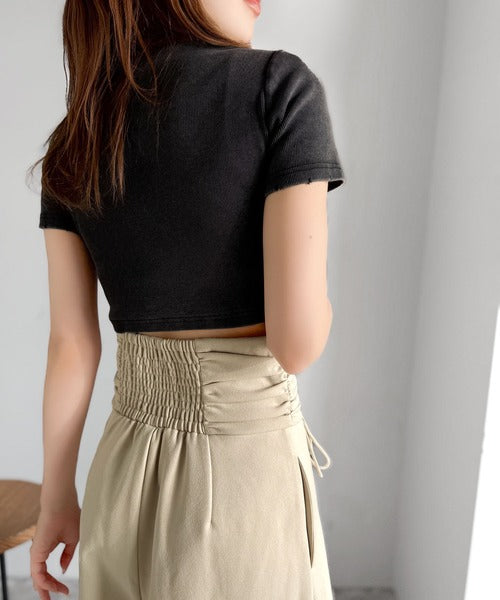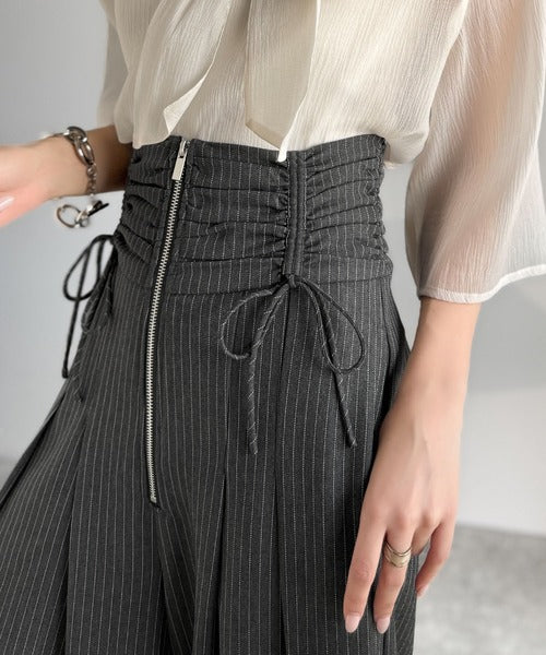 ウエスト部分はシャーリングとフロントジップ仕様でしっかりフィット。