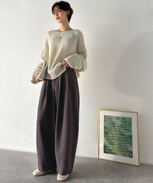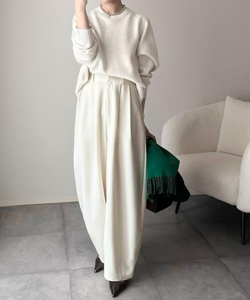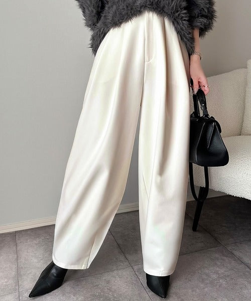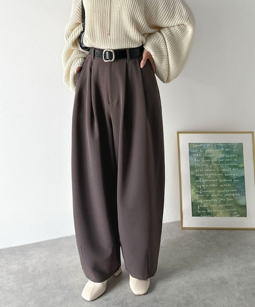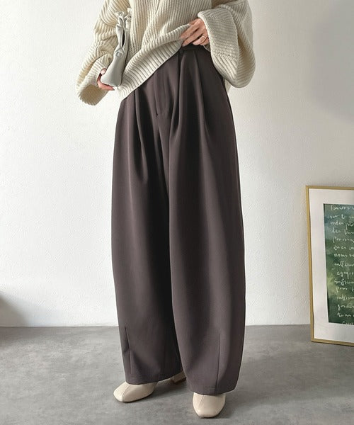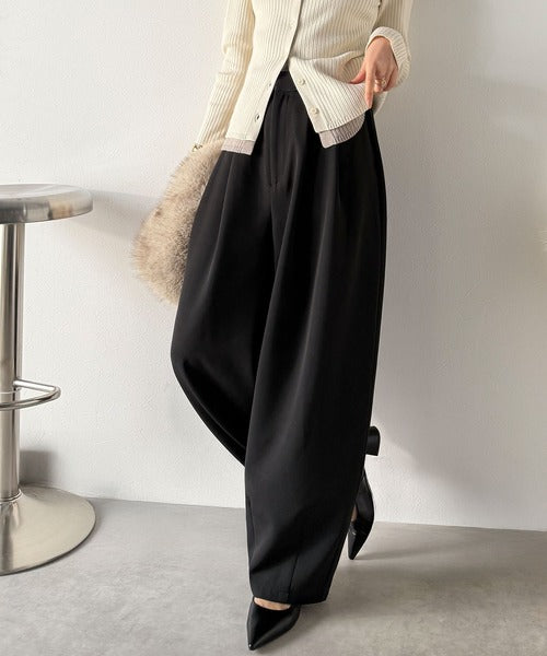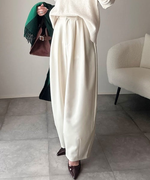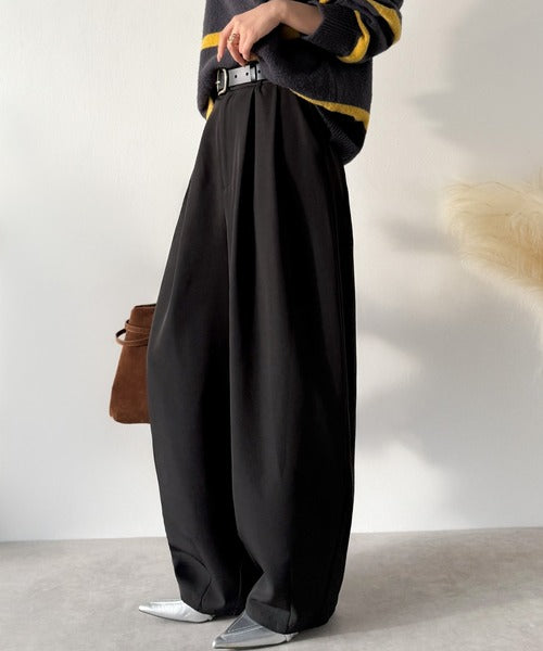 【防シワ、ウォッシャブル機能付き】1年中使えて、ONもOFFも主役級。高機能タックワイドカーブシルエットスラックスパンツ ce0940253