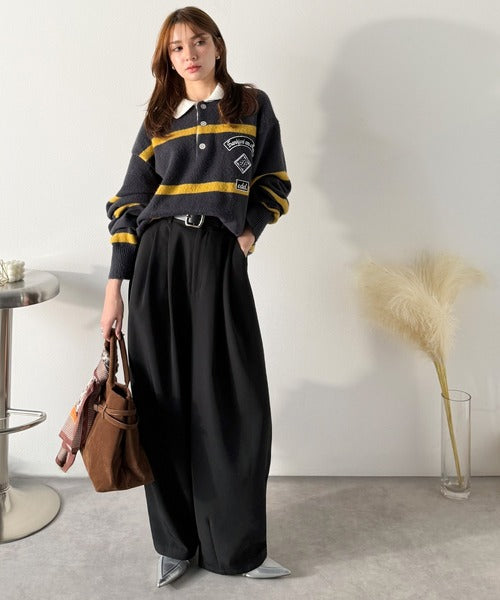 シャツやブラウスできれいめに、ロゴTやスウェットで抜け感を出してもサマになる“最旬スラックス”です。