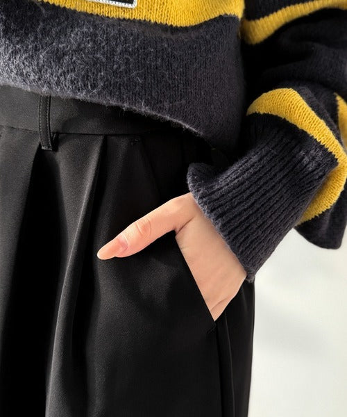 フロントはタック入りでスッキリ見せつつ、後ろウエストゴムで穿き心地もラクちん♪