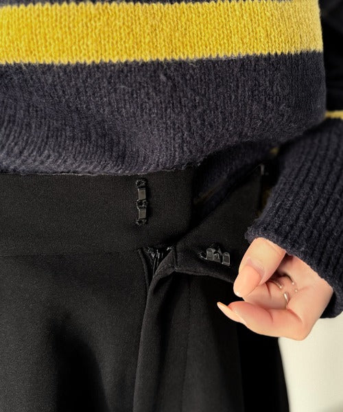 裾にダーツを入れた立体的なカーブシルエットで、脚のラインを拾わず美脚見え◎
