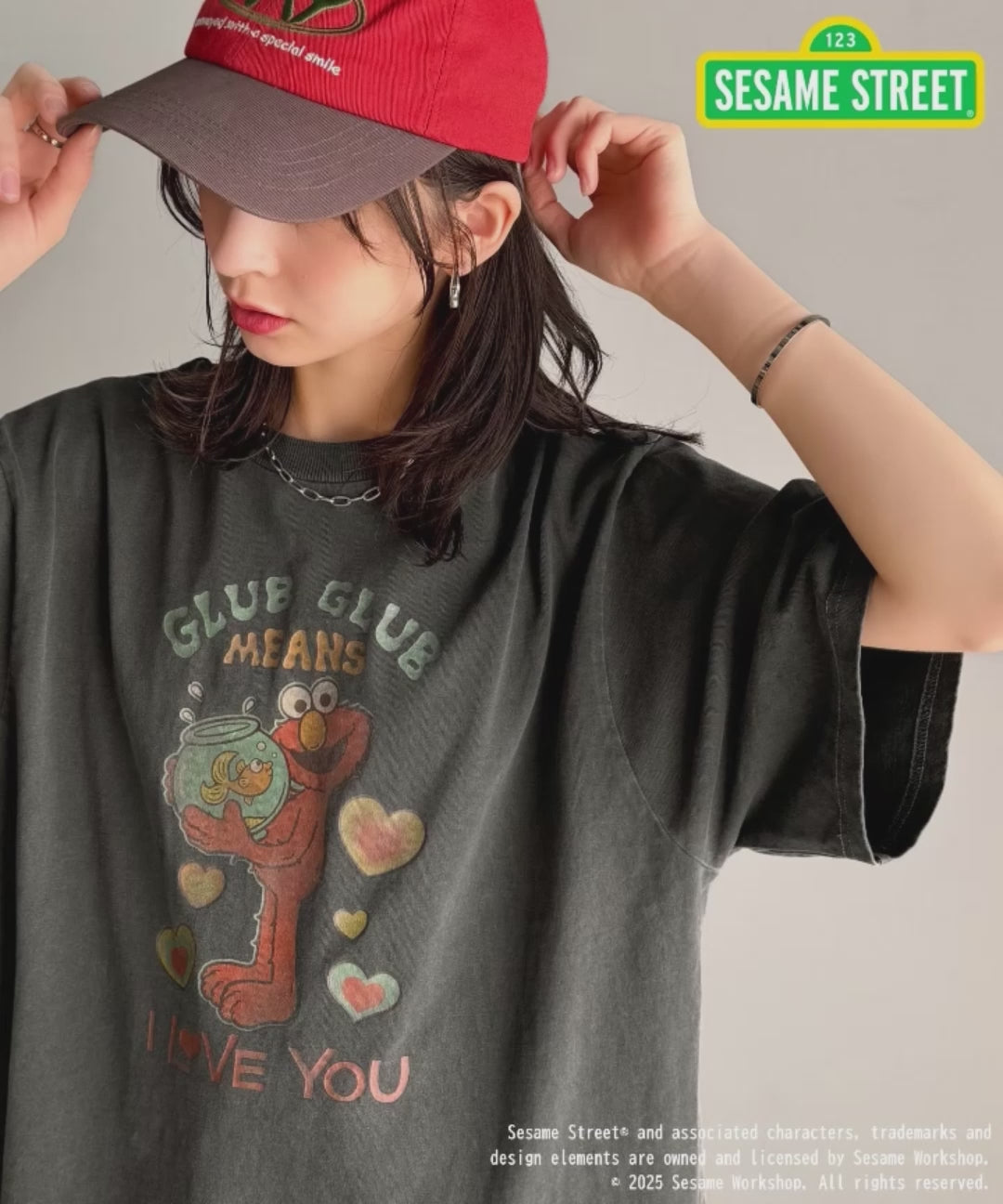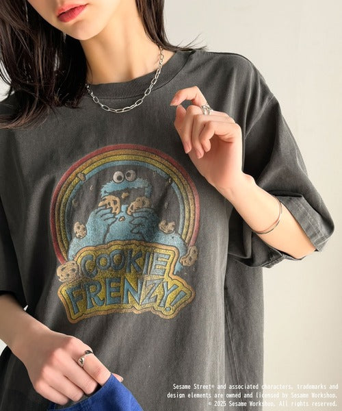 大人カジュアルにハマる。綿100%セサミキャラピグメント加工ビッグTシャツ cm1330004