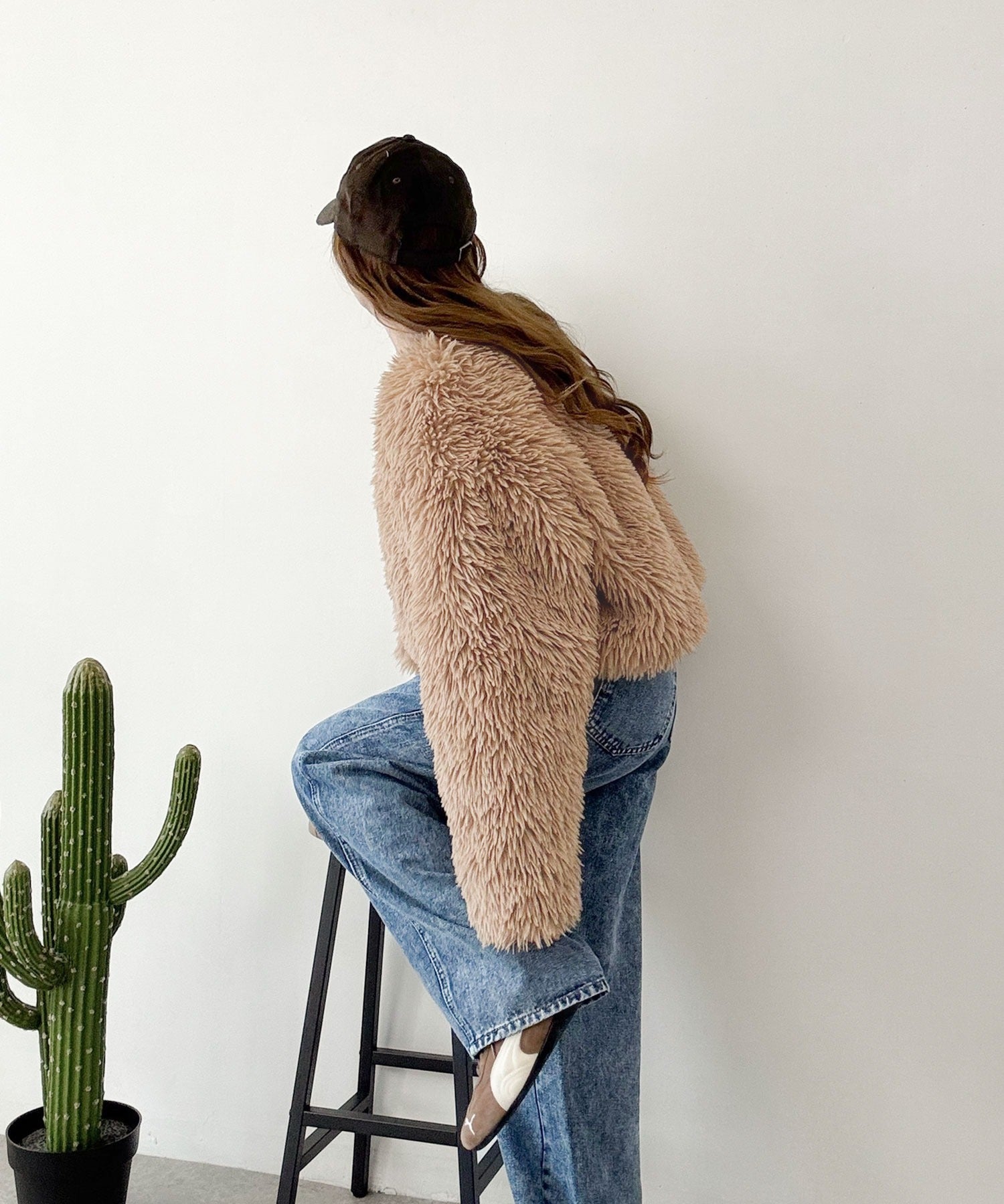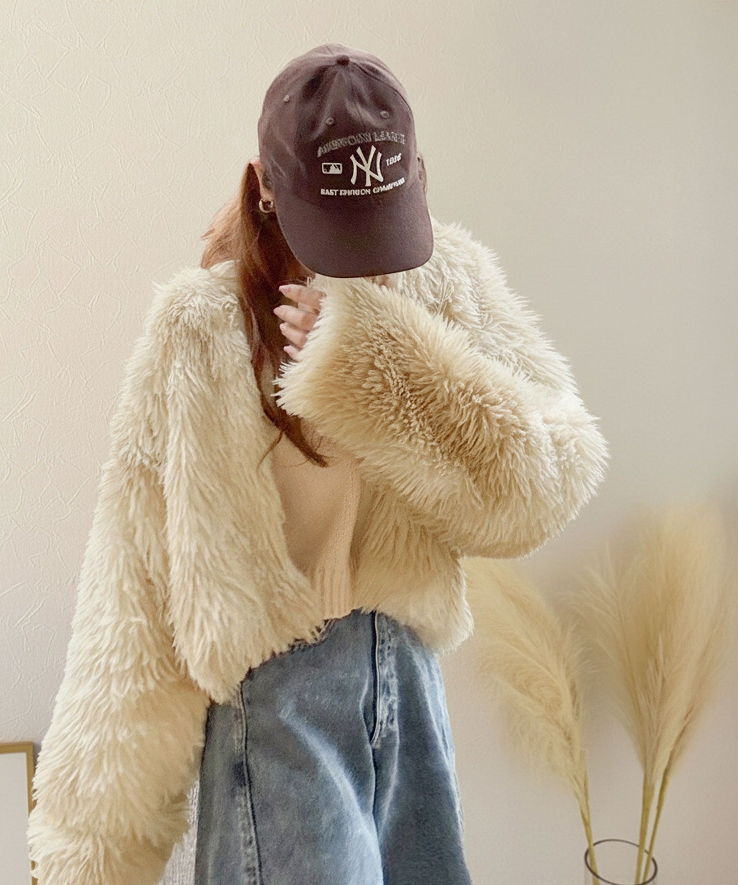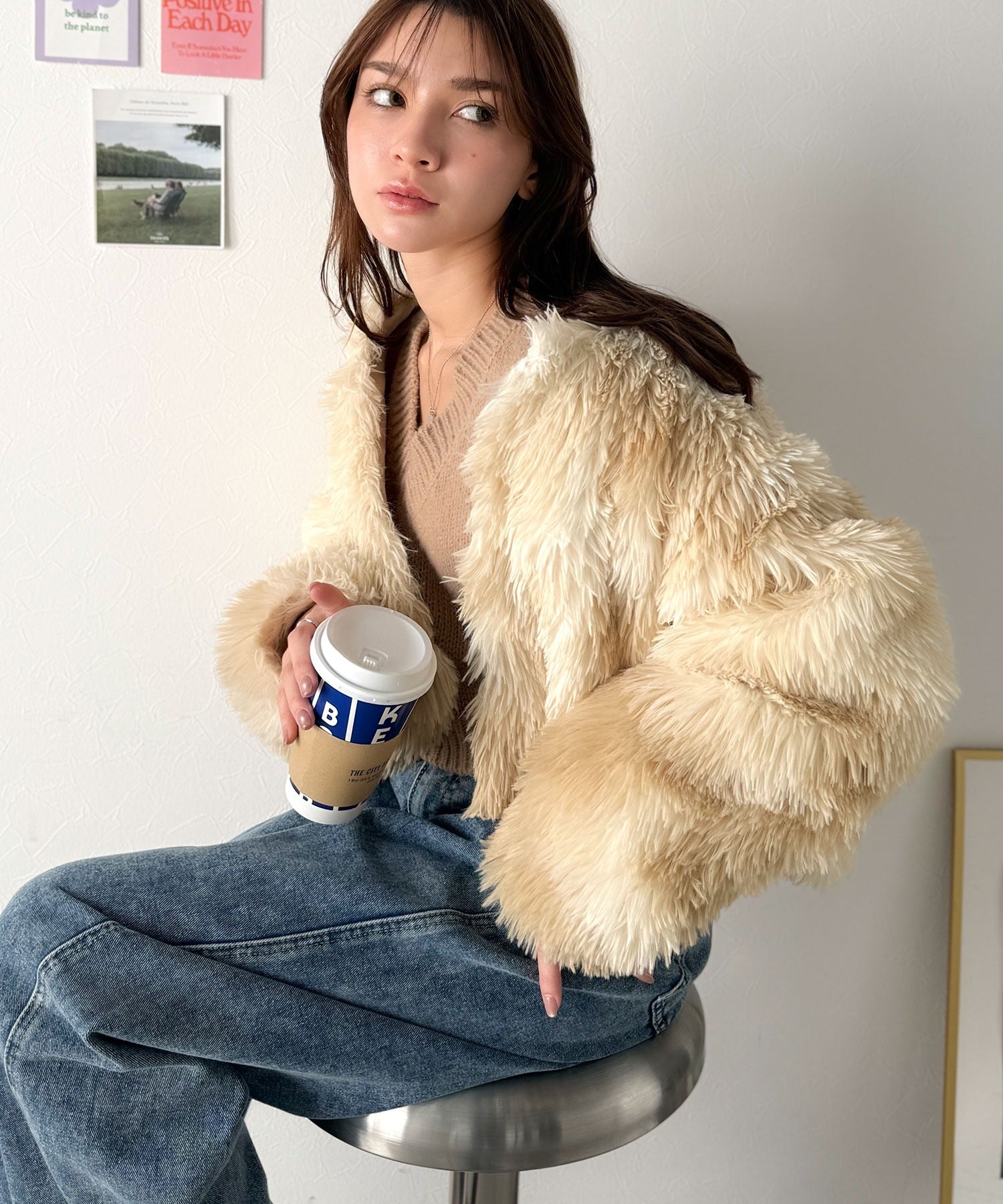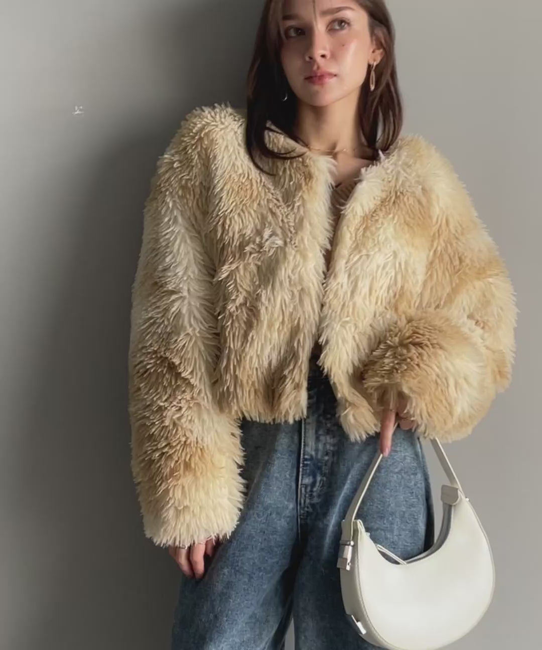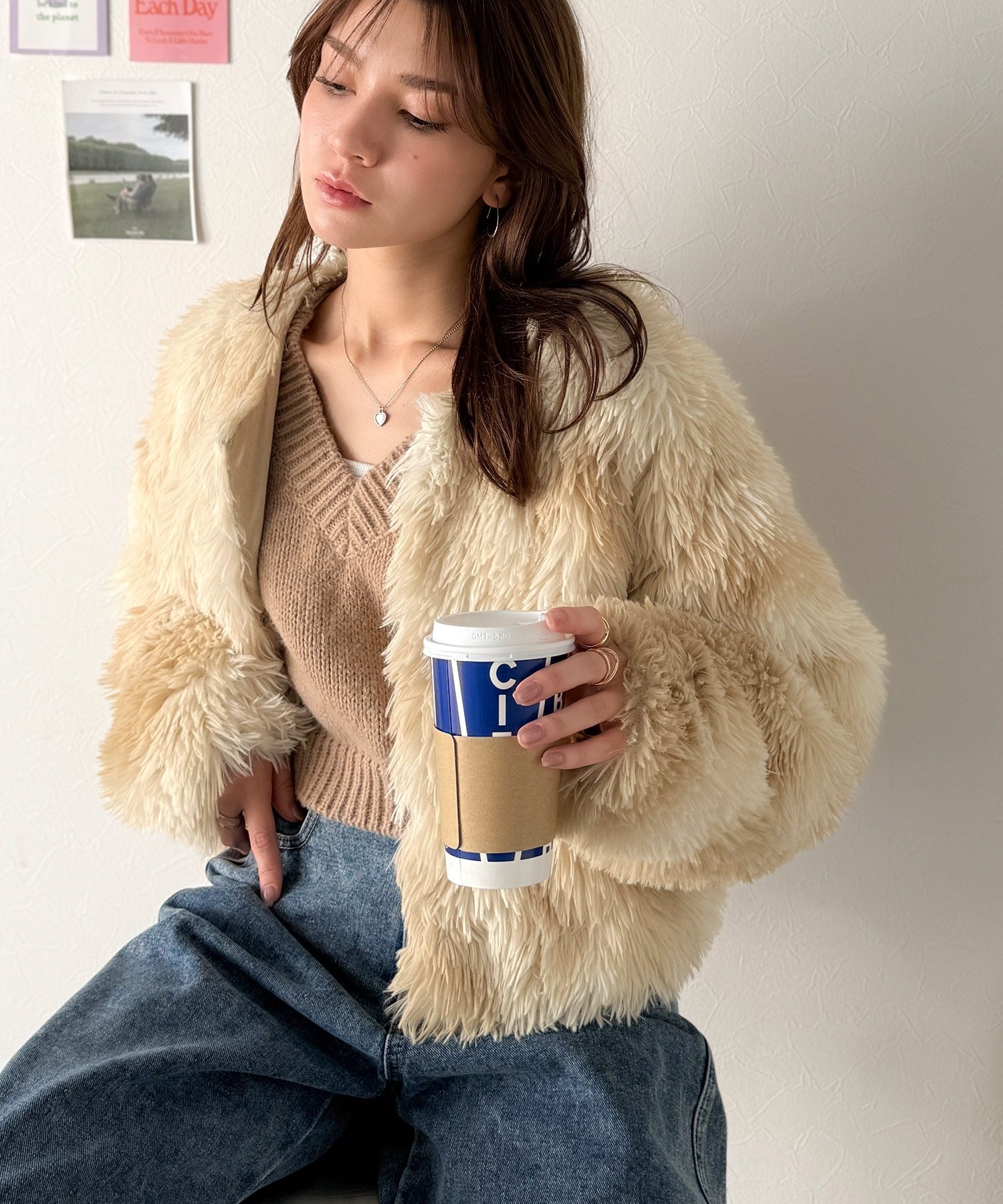 《AYA×クラシカルエルフコラボ》品なノーカラーショートファーコート。ノーカラーショートファーコート ce1010522