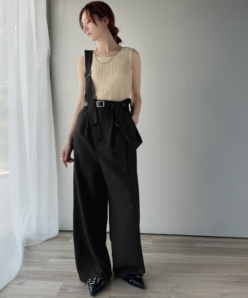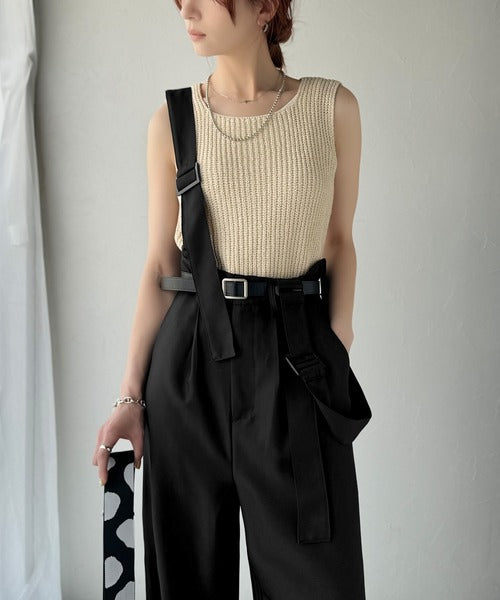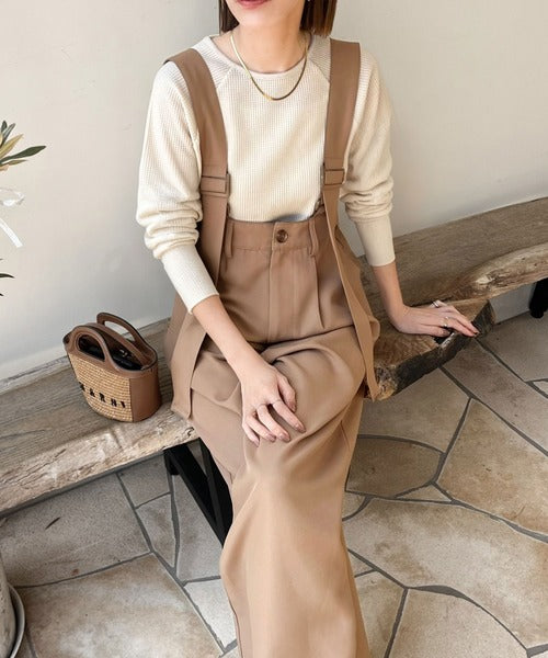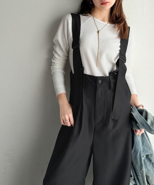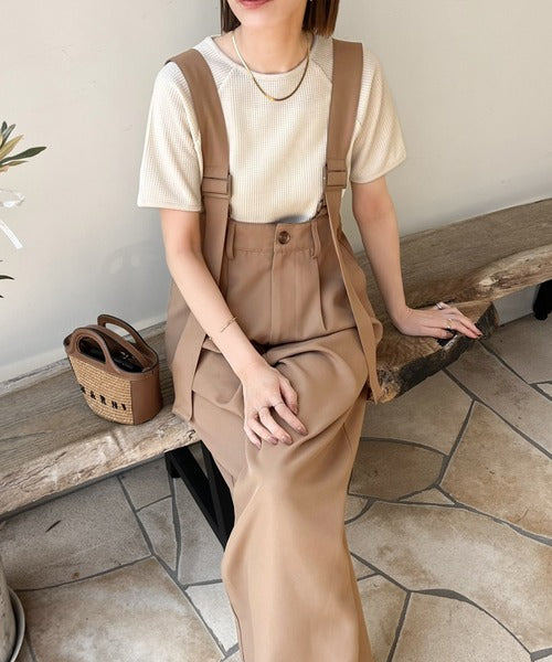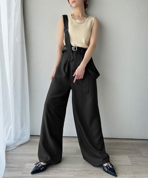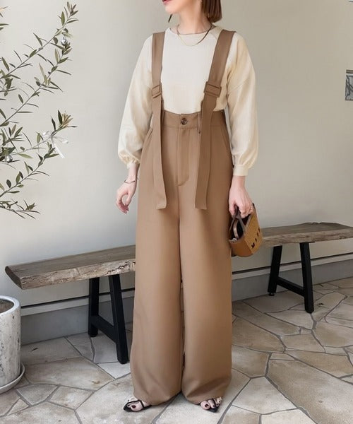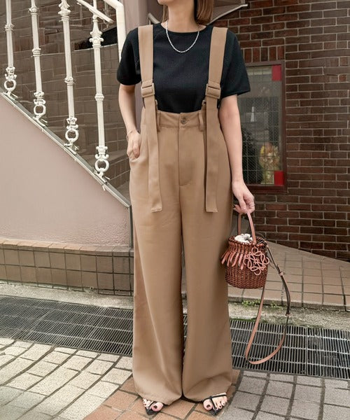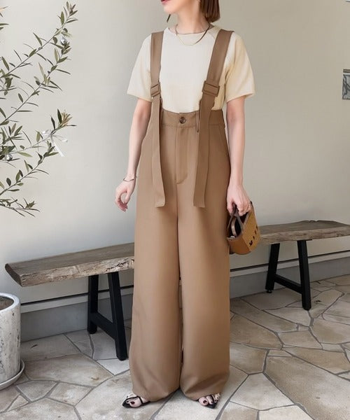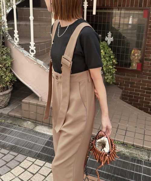 《sayo×クラシカルエルフコラボ》旬顔の太ベルト。タック入りハイウエストツイルサロペット ce1010451