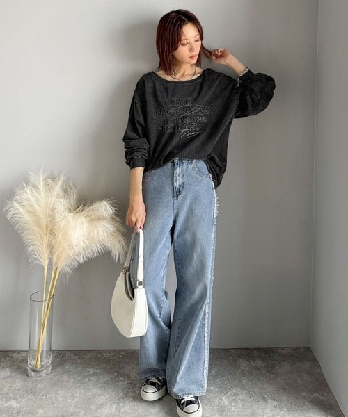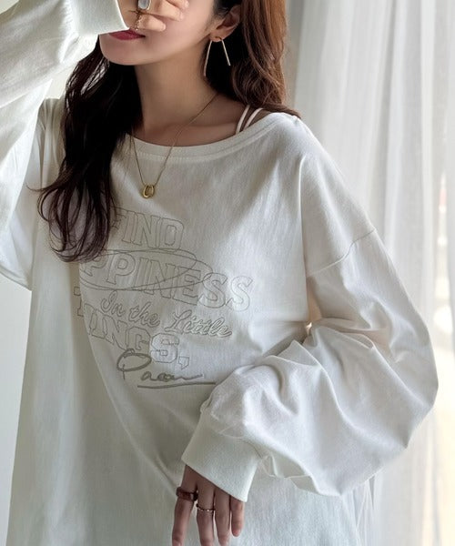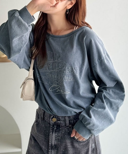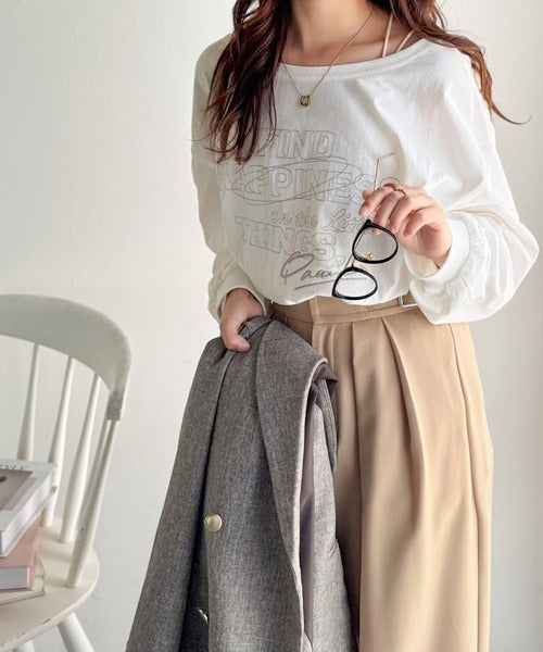 古着感のある緩さが今っぽ可愛い。綿100%前後2WAYワイドネックロンTEE(長袖) ce1260494