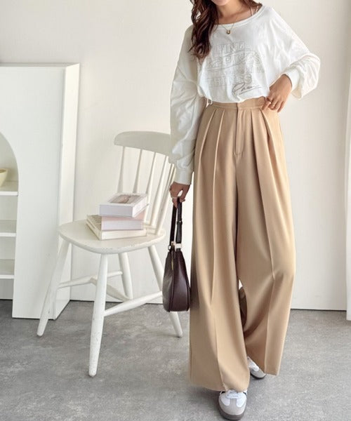 クールな印象を出したい時はフレアパンツに、足元は厚底スニーカーで組み合わせるのもおすすめ♪