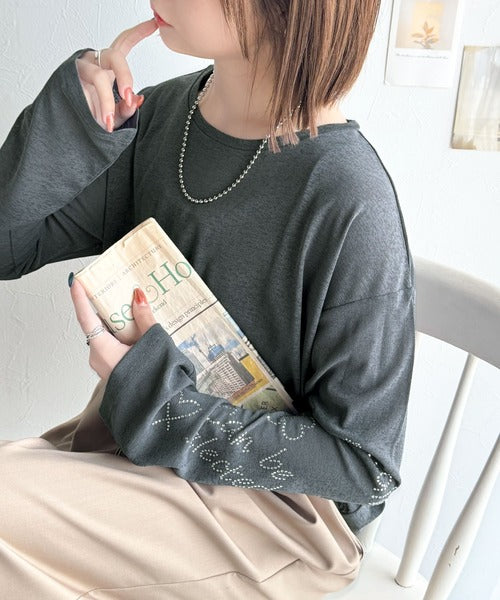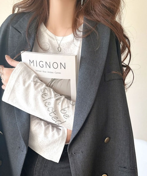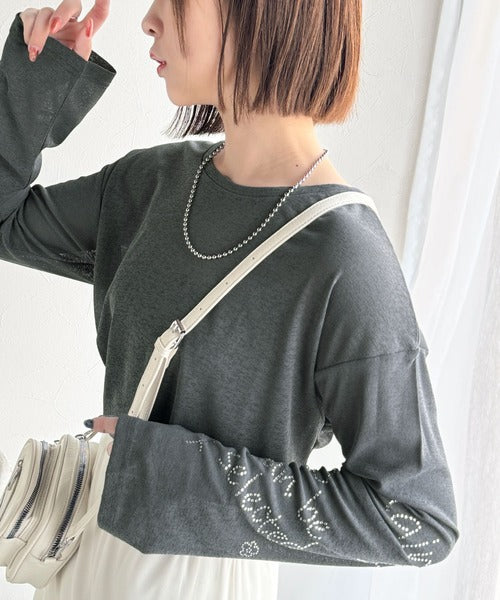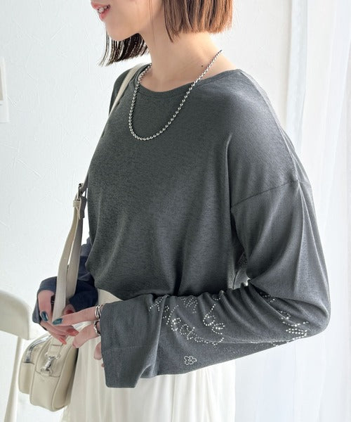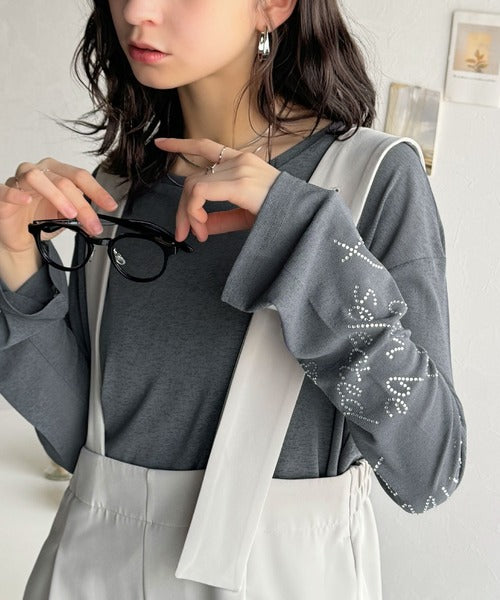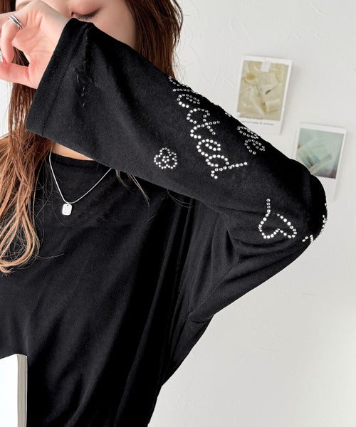 左袖には、ロゴとお花のモチーフが施されたラインストーンを散りばめ、