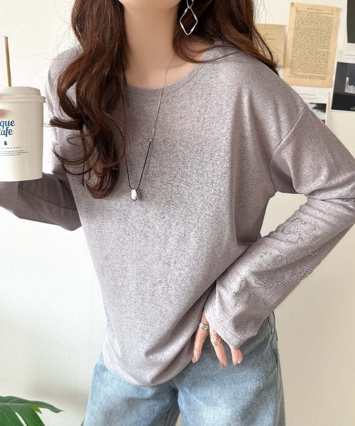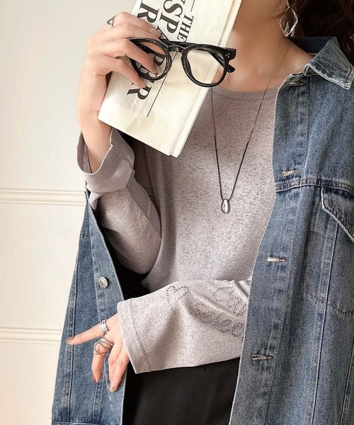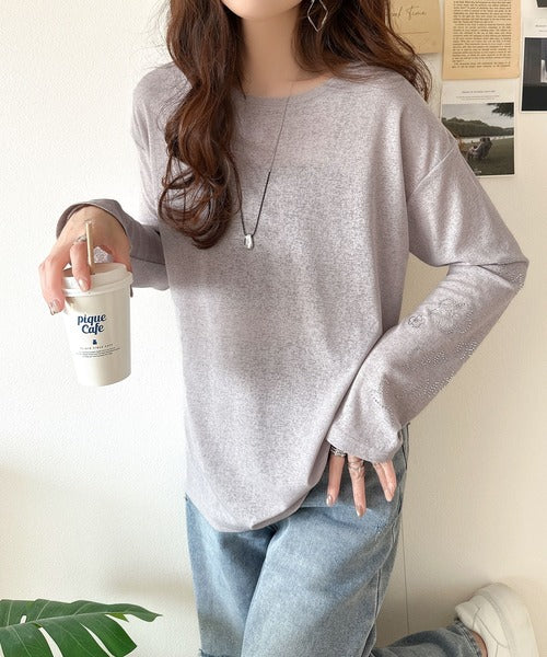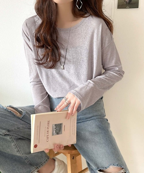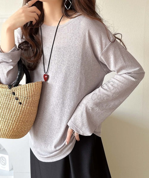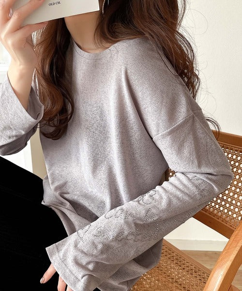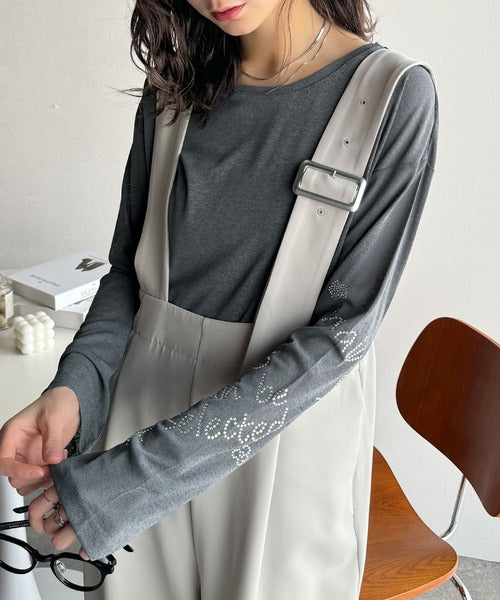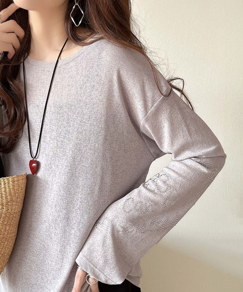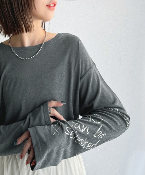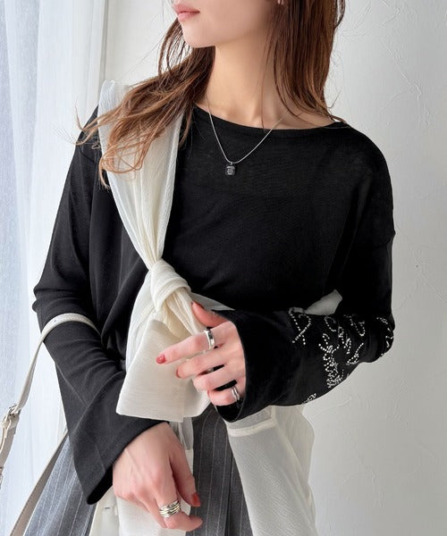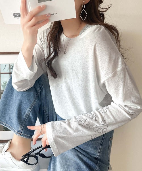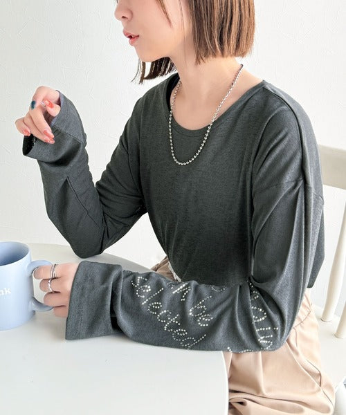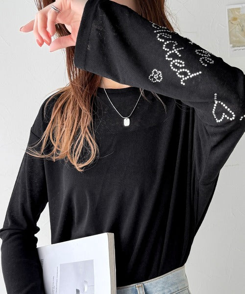 きらめきを纏う。ロゴとフラワーモチーフ袖ラインストーン付きシアー長袖トップ(フレアスリーブ) ce1010422