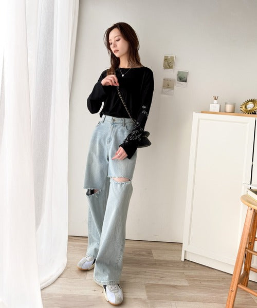 その日の気分に合わせてカーブデニムやフレアパンツを合わせてもOK◎