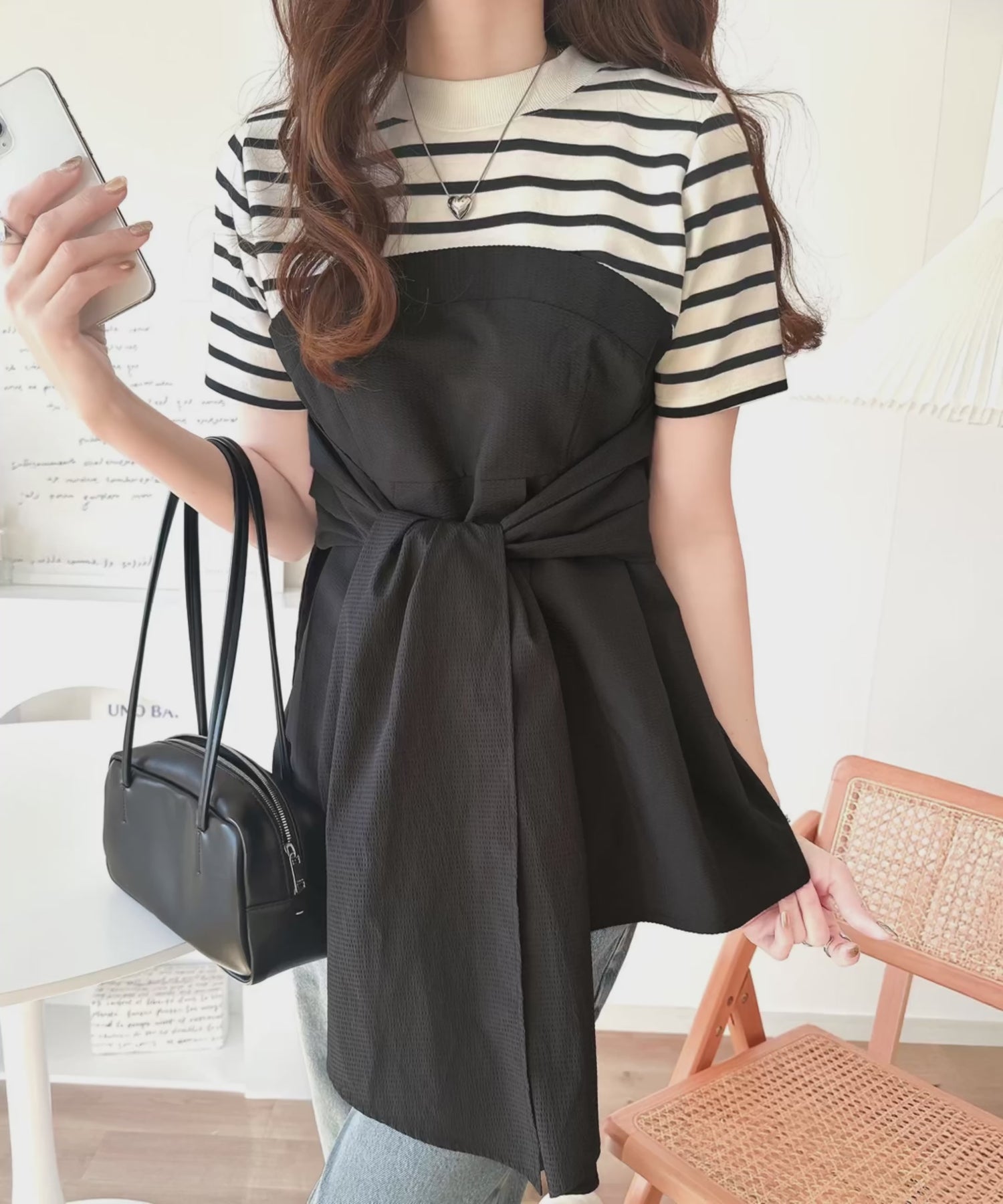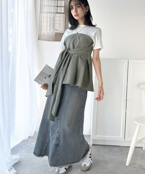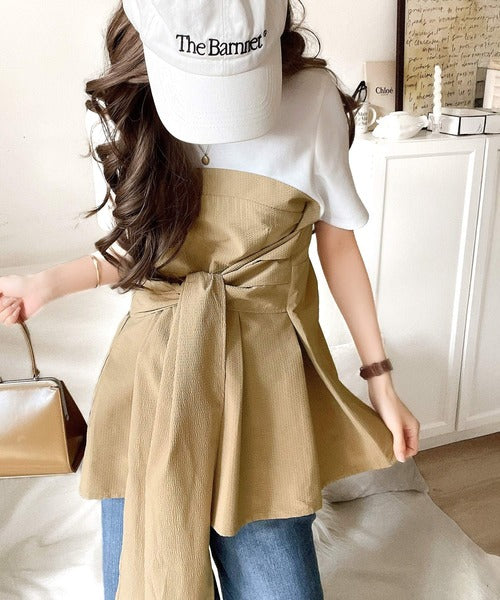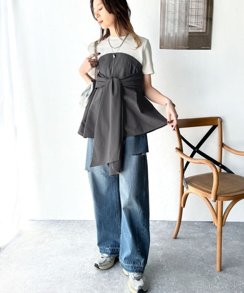 トレンドのリボンディテールが新鮮なビスチェドッキングトップス。
