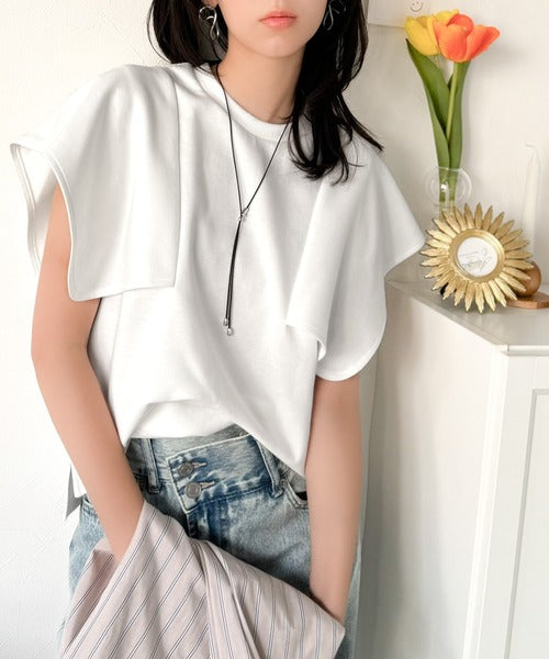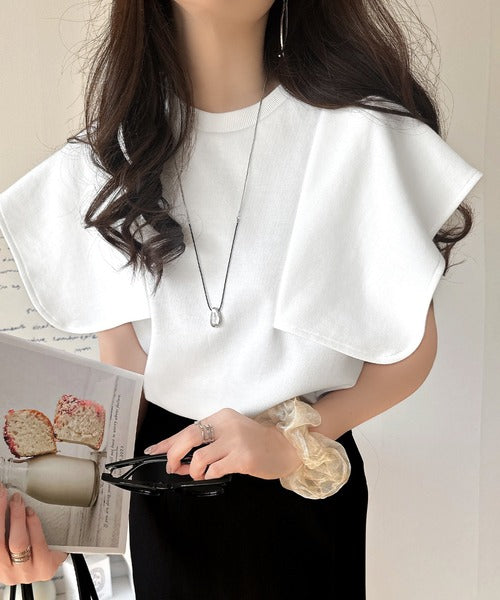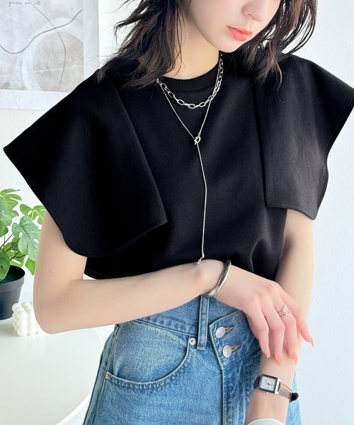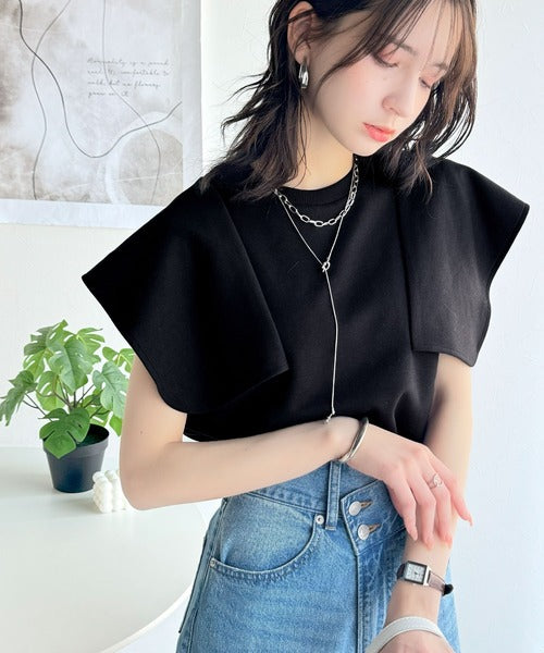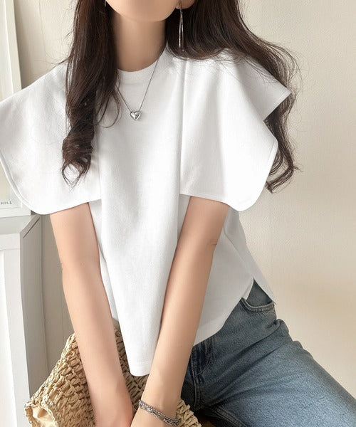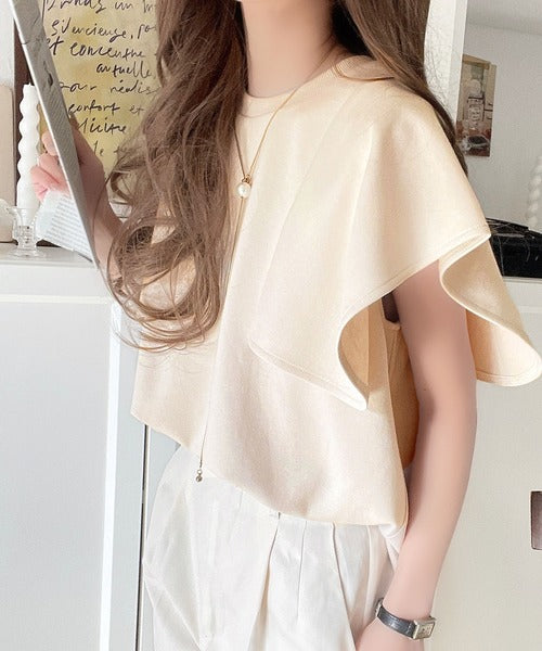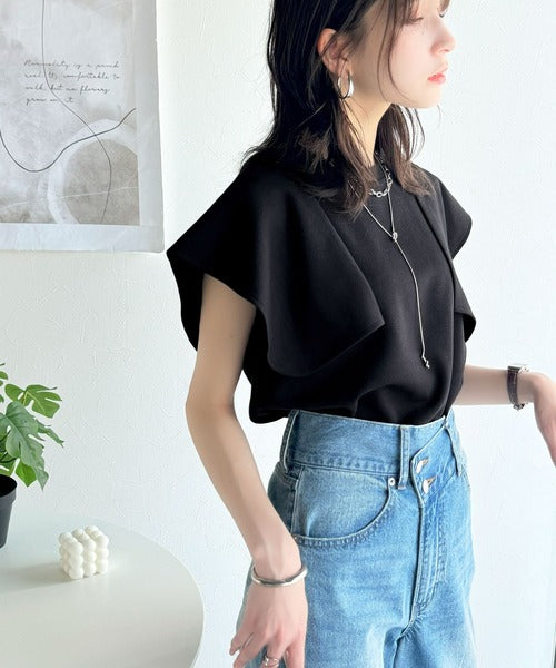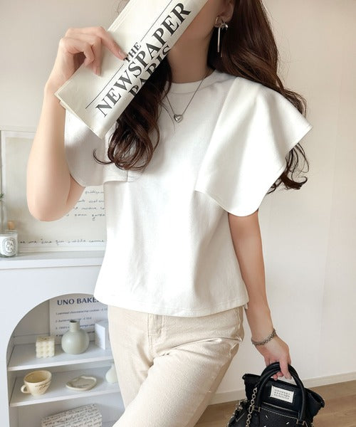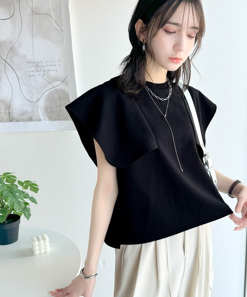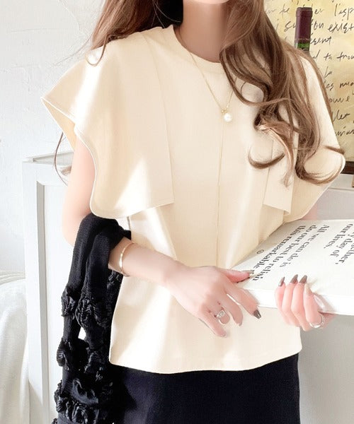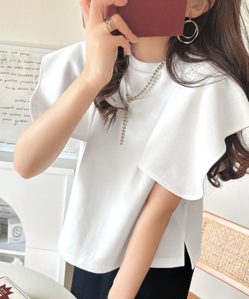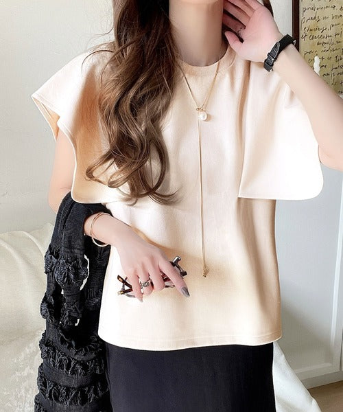 華奢見せにトレンドをプラス。ハンカチスリーブポンチ素材カットソープルオーバー(半袖) ce1020195