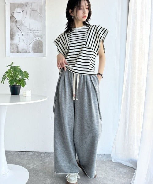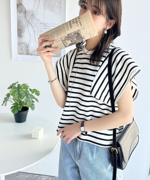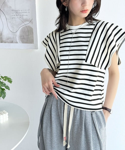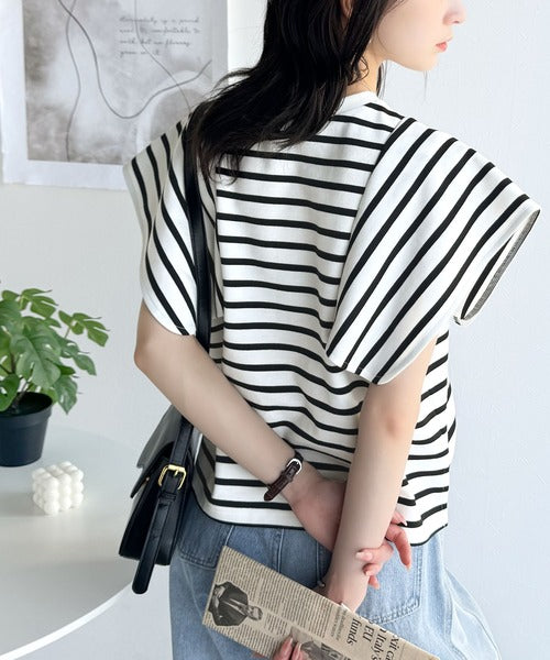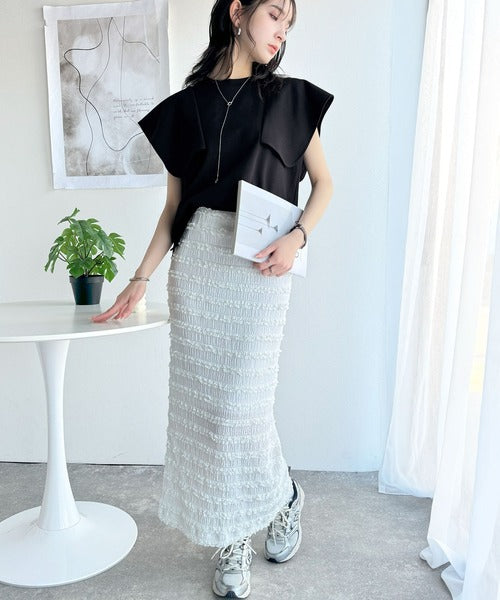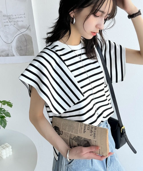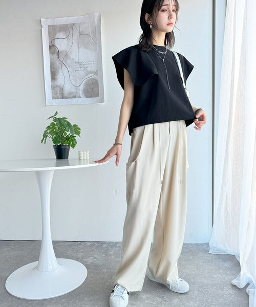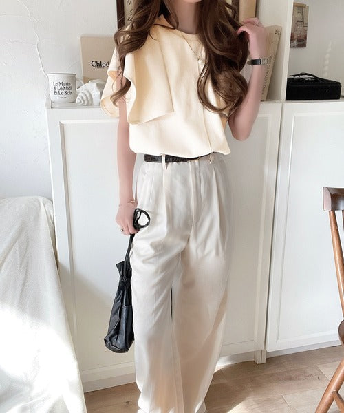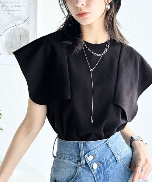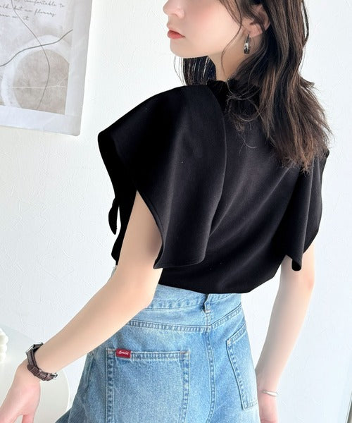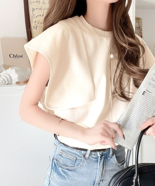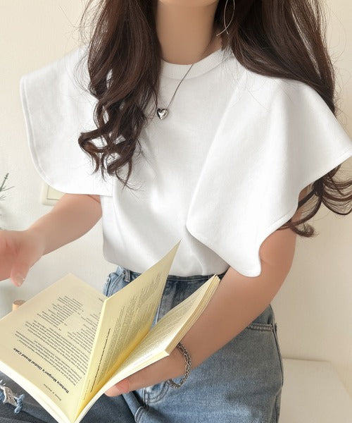 華奢見せにトレンドをプラス。ハンカチスリーブポンチ素材カットソープルオーバー(半袖) ce1020195