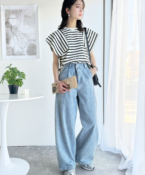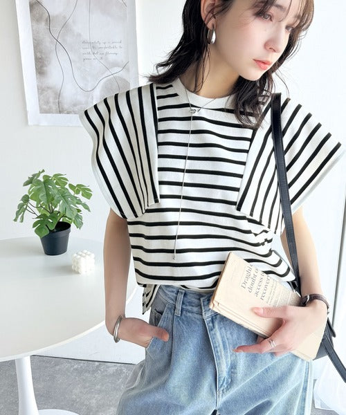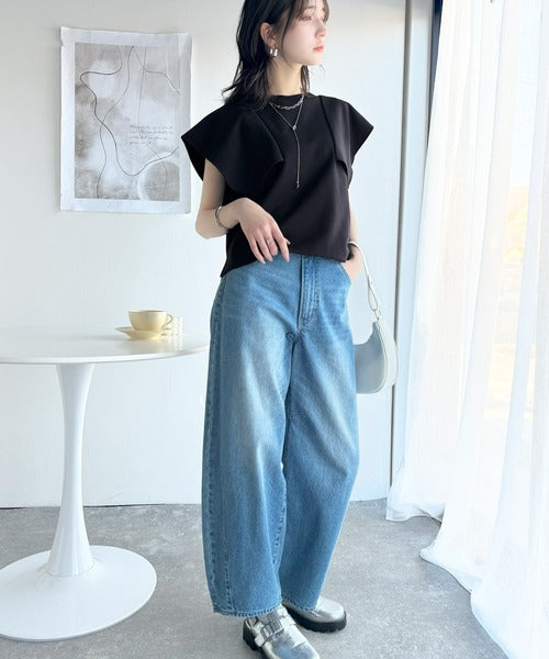 軽やかな袖のひらひらで、二の腕をすっきりカバー◎