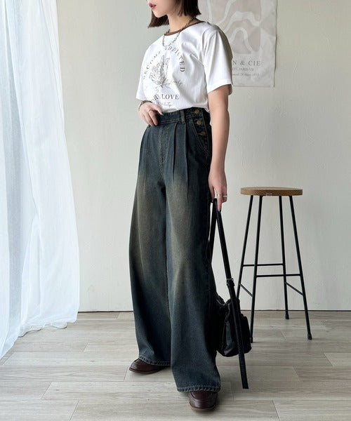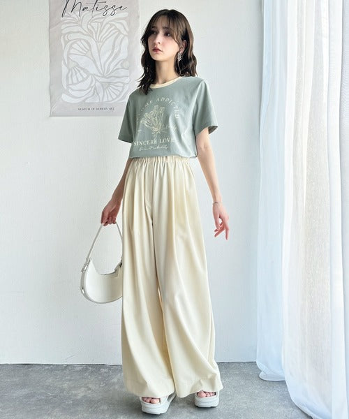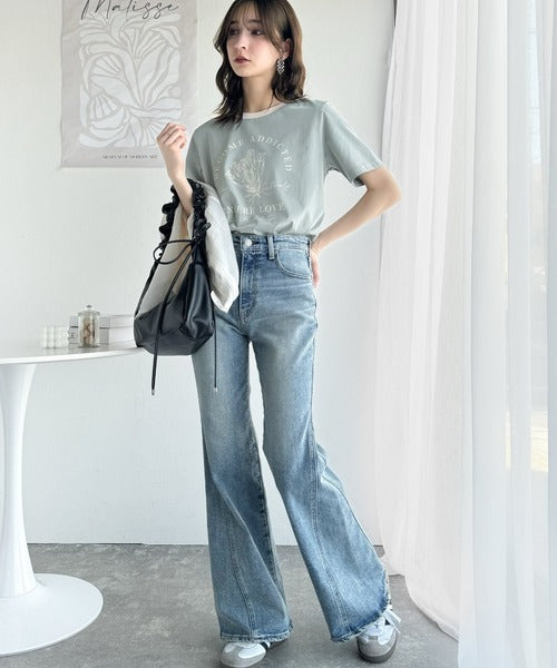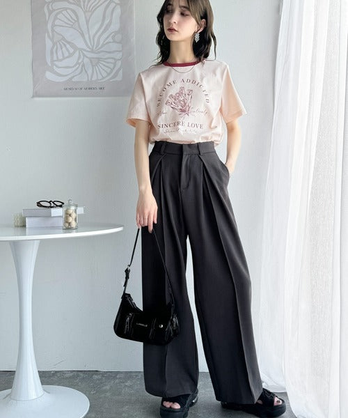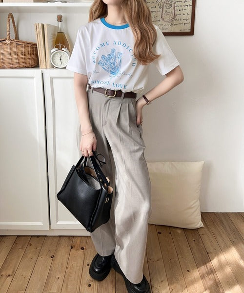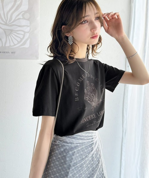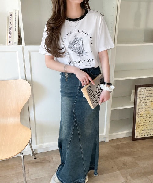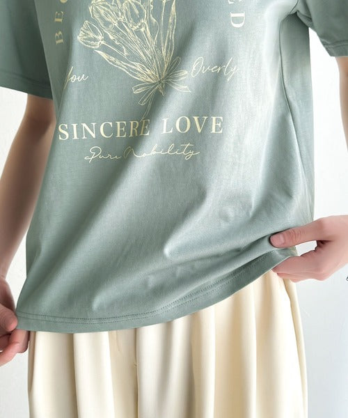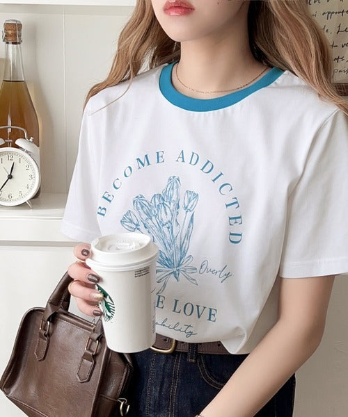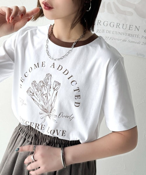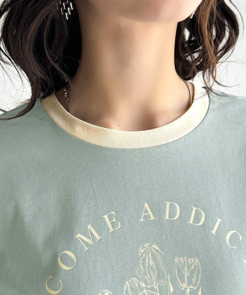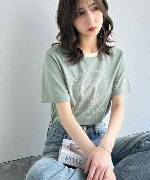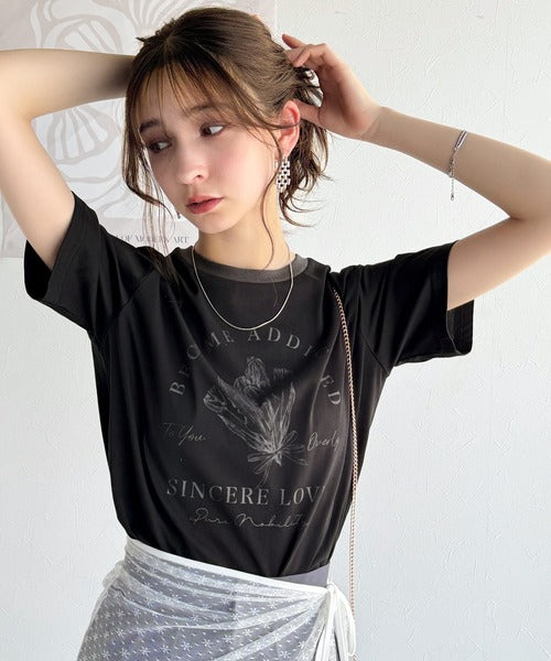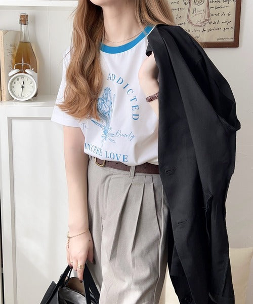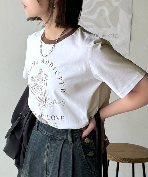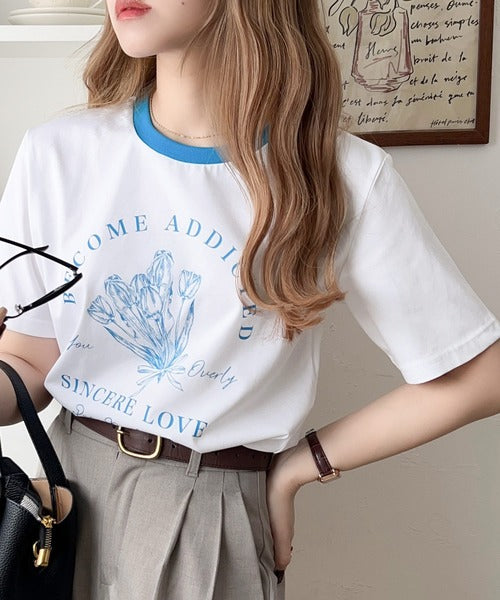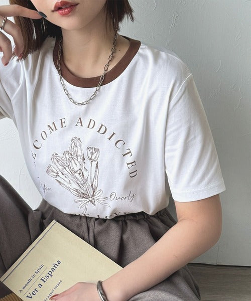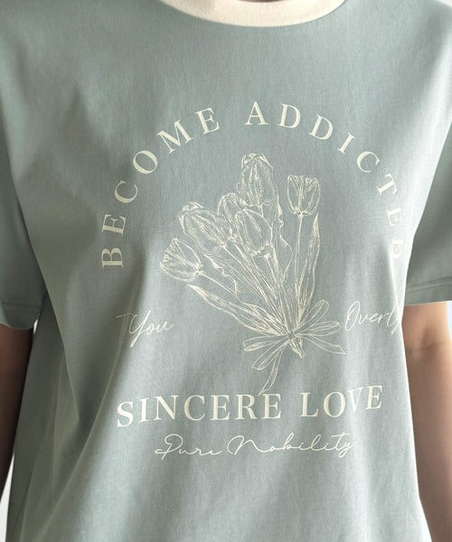 トレンドのディテールが魅力。シルケットフラワーカーブロゴリンガー半袖Tシャツ ce1020196