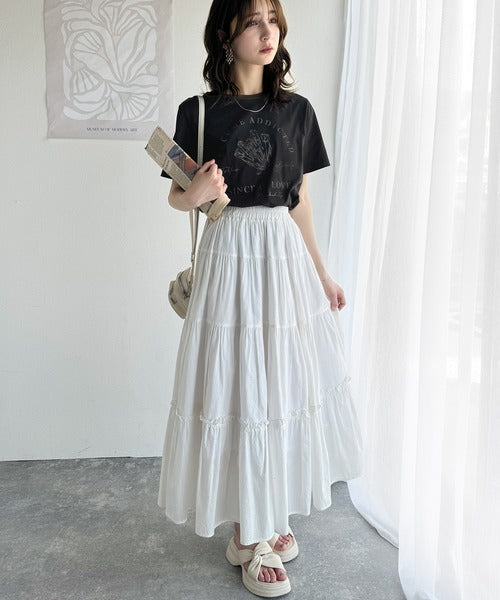 また、シルエットにこだわったエアリーなスカートと合わせると、優雅で軽やかな印象に。