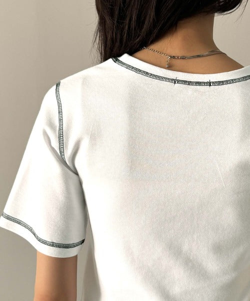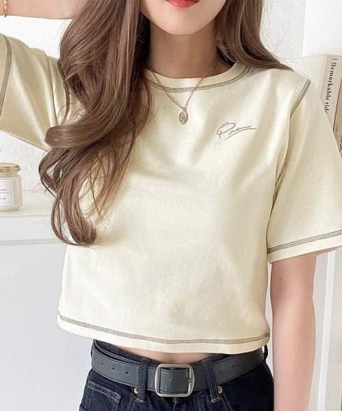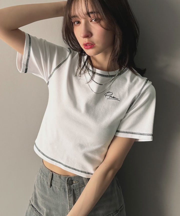 1枚で今っぽデザイン♪PAEAN刺繍配色ステッチチビTシャツ(半袖) ce1020200