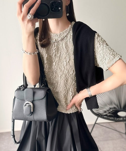 華やかな高級感を演出する。カットジャガード短丈Tシャツ(半袖) ce1050273
