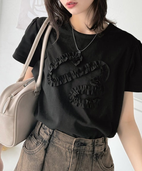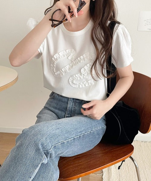 シンプルなTシャツに可愛らしさをプラスしたリボン刺繍デザイン。