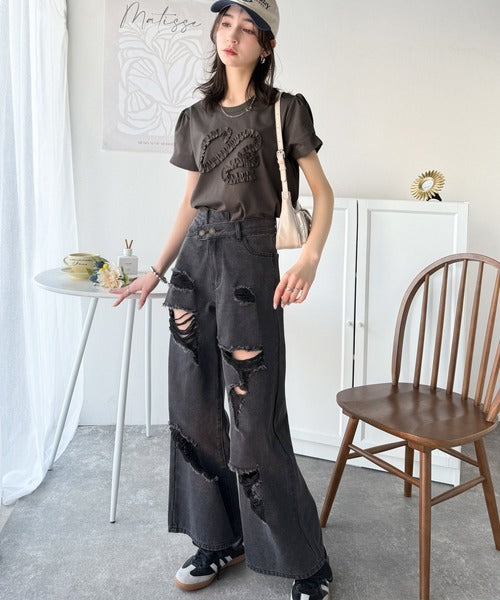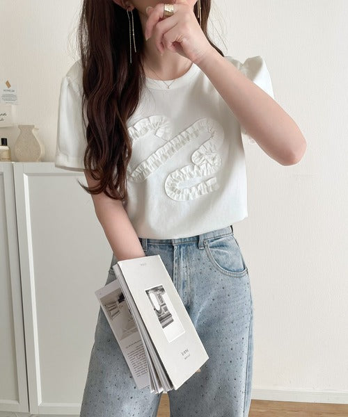 このシルケットフリル刺繍パフスリーブプルオーバーは、デザインにこだわった一品。