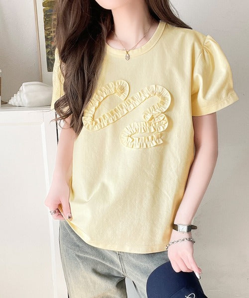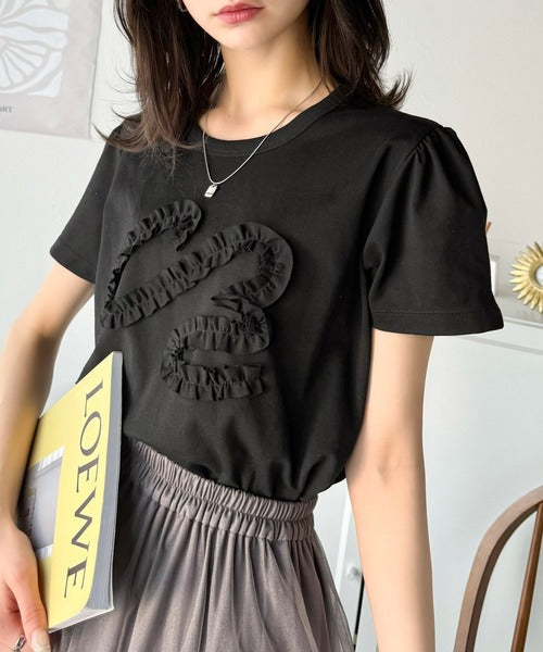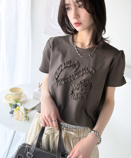 フリル刺繍でエレガントに。シルケットフリル刺繍パフスリーブプルオーバー(半袖) ce1050297
