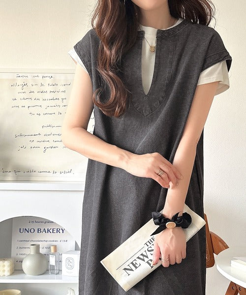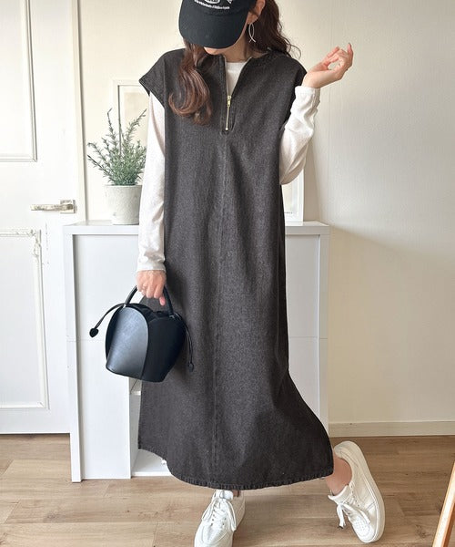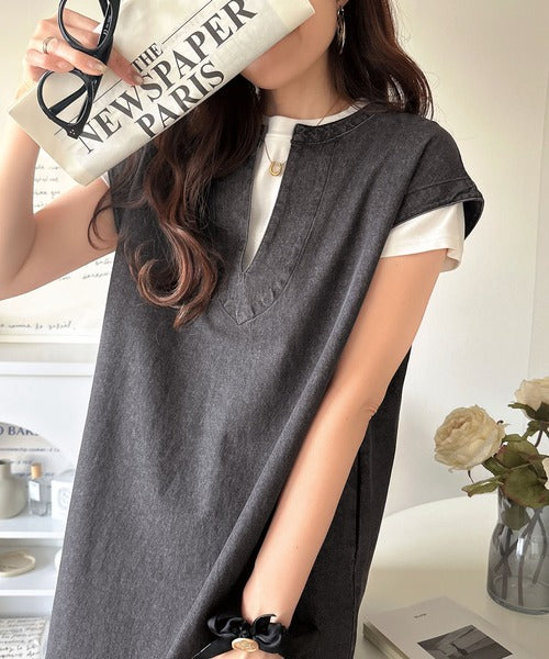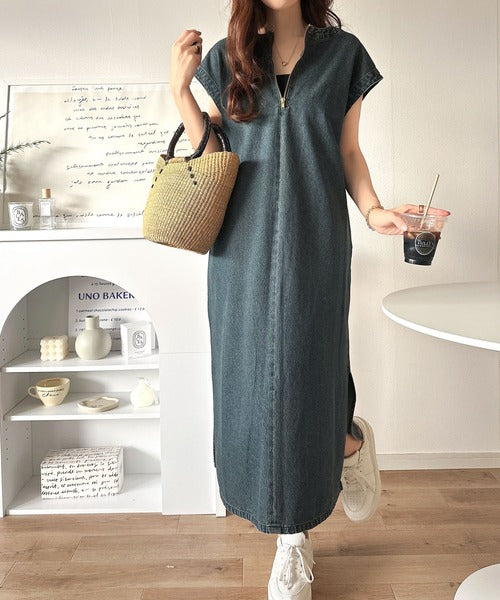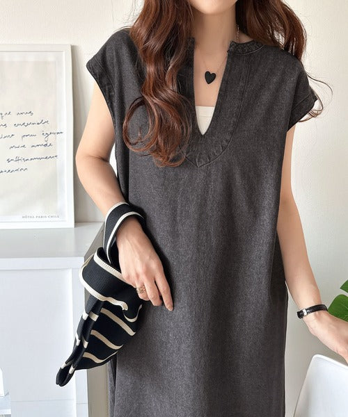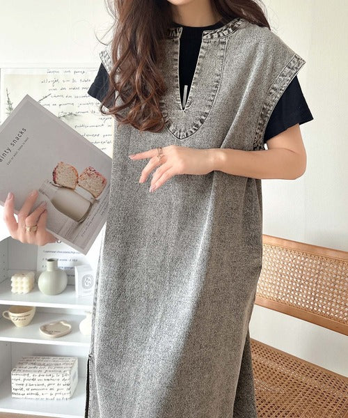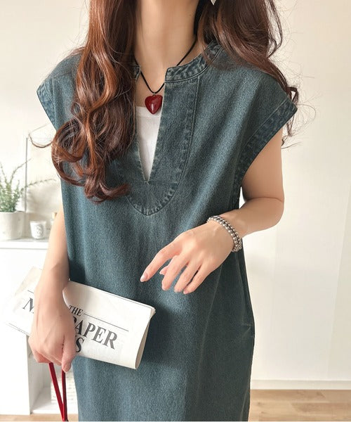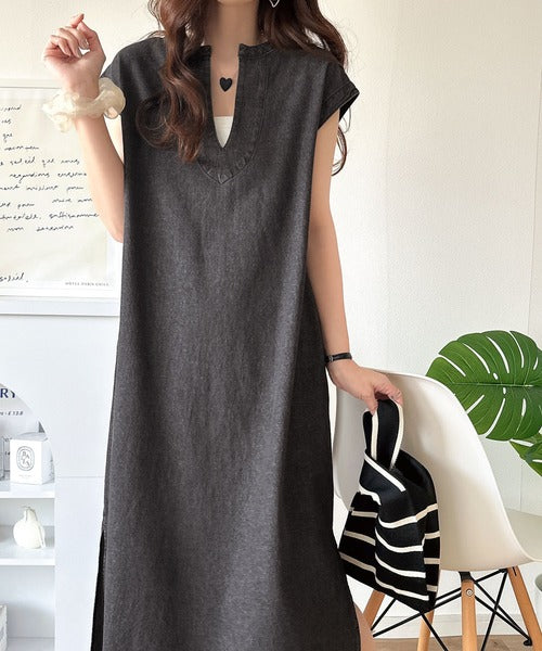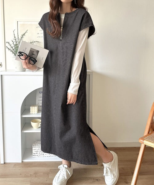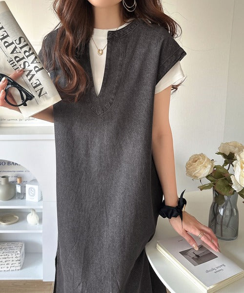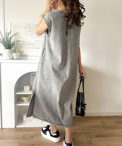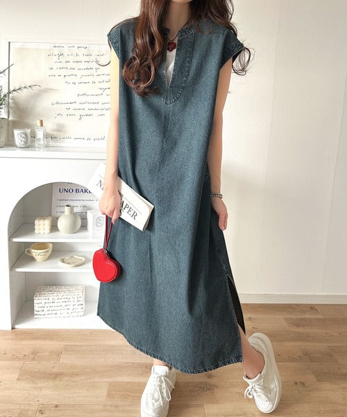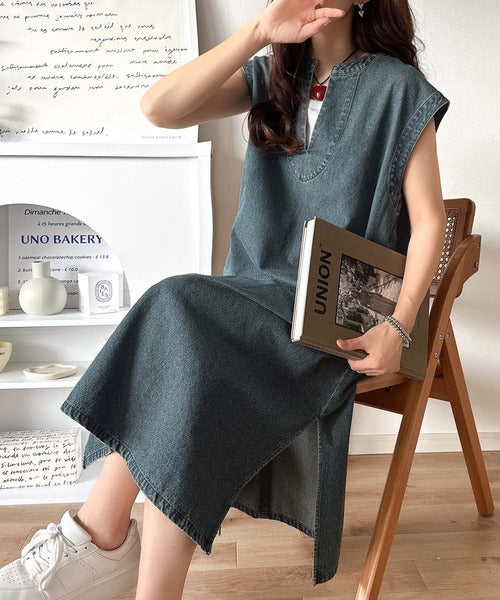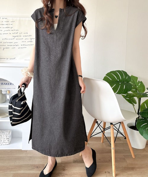 リラクシーな大人カジュアル。綿100%カフタン調サイドスリット前後2wayデニムワンピース ce1070138