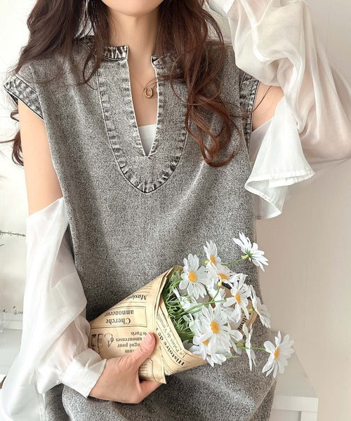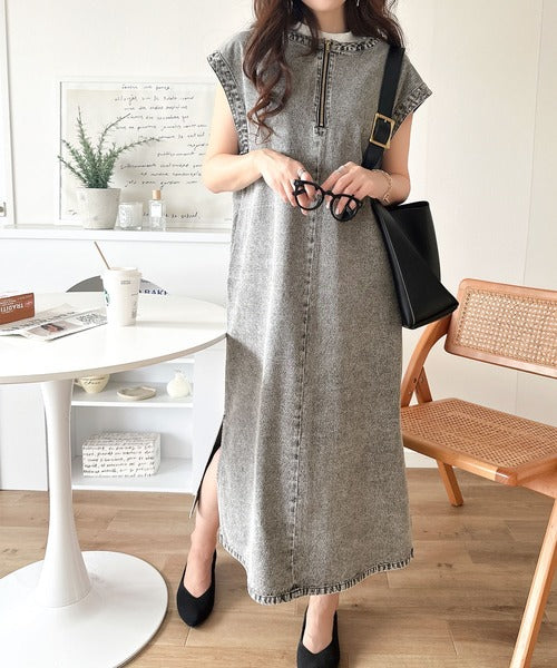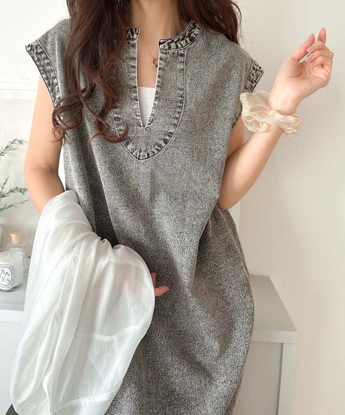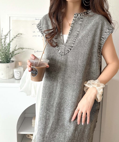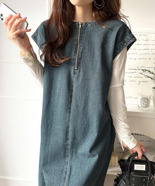 カジュアルすぎない大人仕様のデニムワンピース。