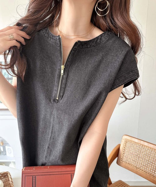 胸元のZIPを開けることで、さらに女性らしい印象に。